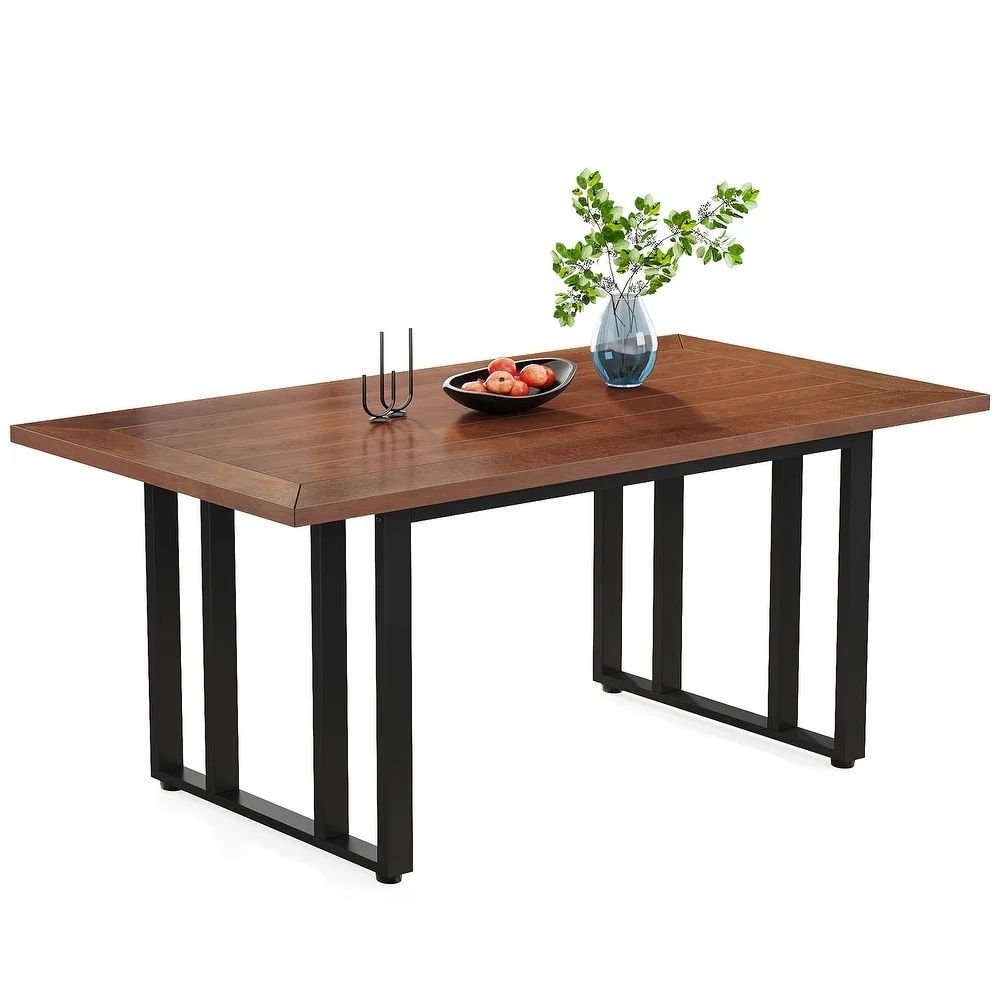 The combination of wood and metal creates a balanced focal point that works especially well in modern kitchens, urban apartments, and contemporary dining areas. Its dark brown tabletop adds warmth, while the metal legs provide a grounded, architectural presence. The table pairs easily with minimalist chairs, mixed-material seating, or industrial-style lighting, allowing flexible styling options. When placed alongside complementary pieces from Modera Furnish dining tables, it contributes to a cohesive interior story defined by durability and thoughtful design. Its material-forward approach reflects principles often highlighted by Architectural Digest, where functional forms and honest construction define modern industrial interiors.