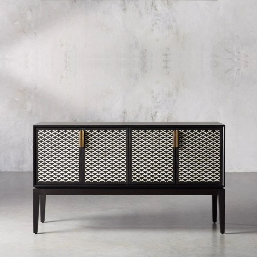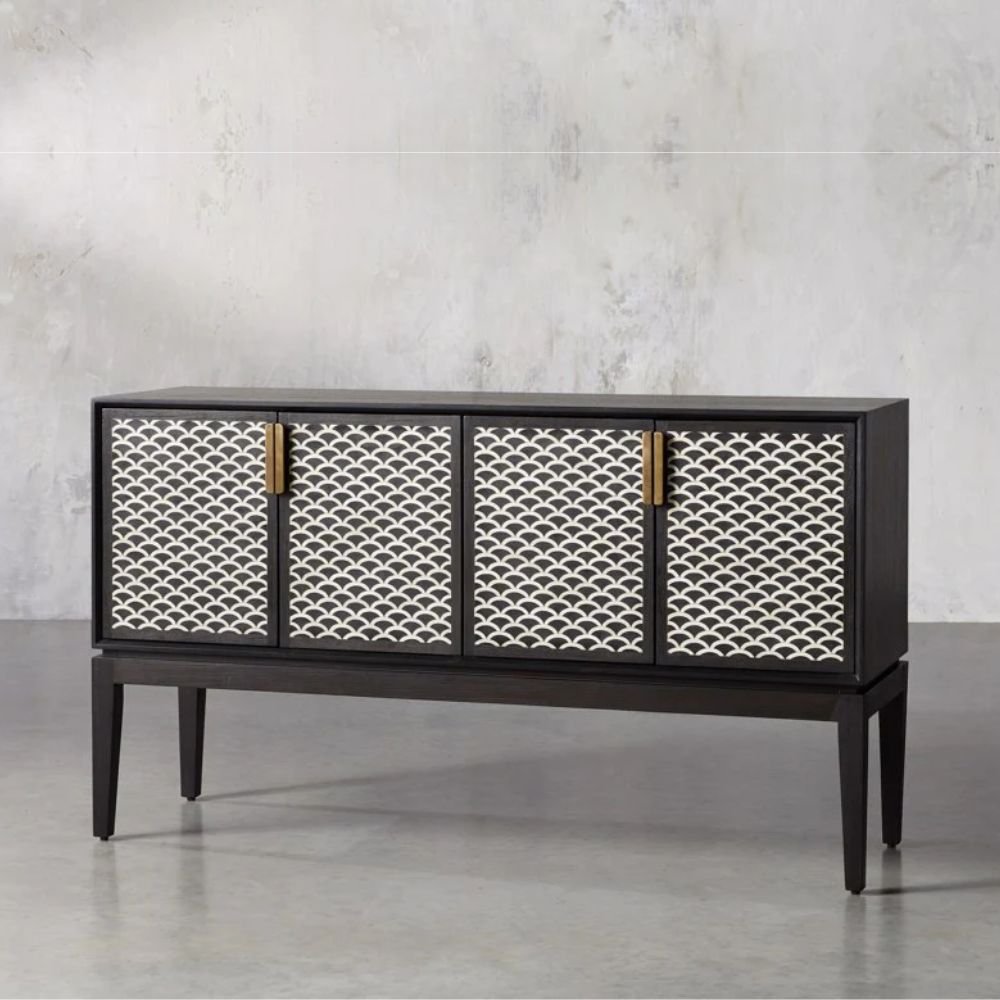 Jodhpuri Bone Inlay Black & White Cabinet