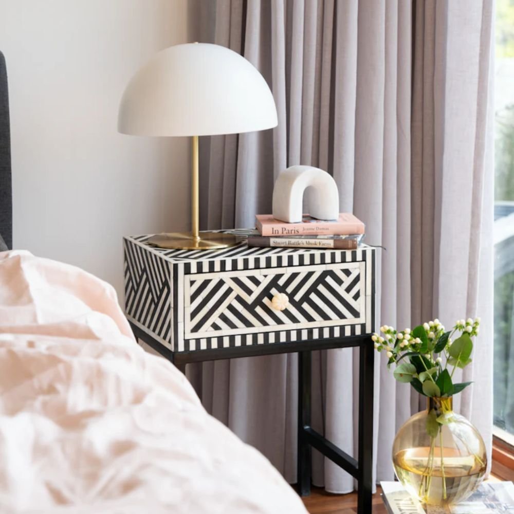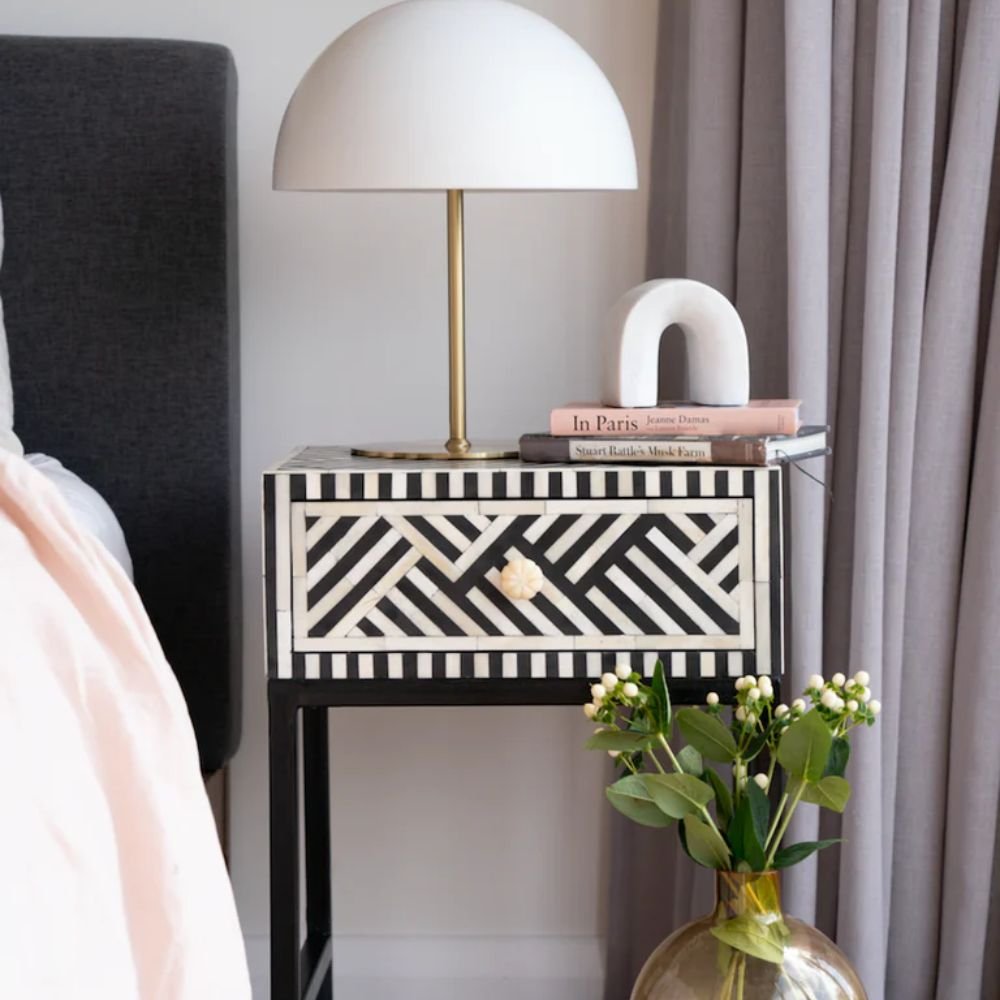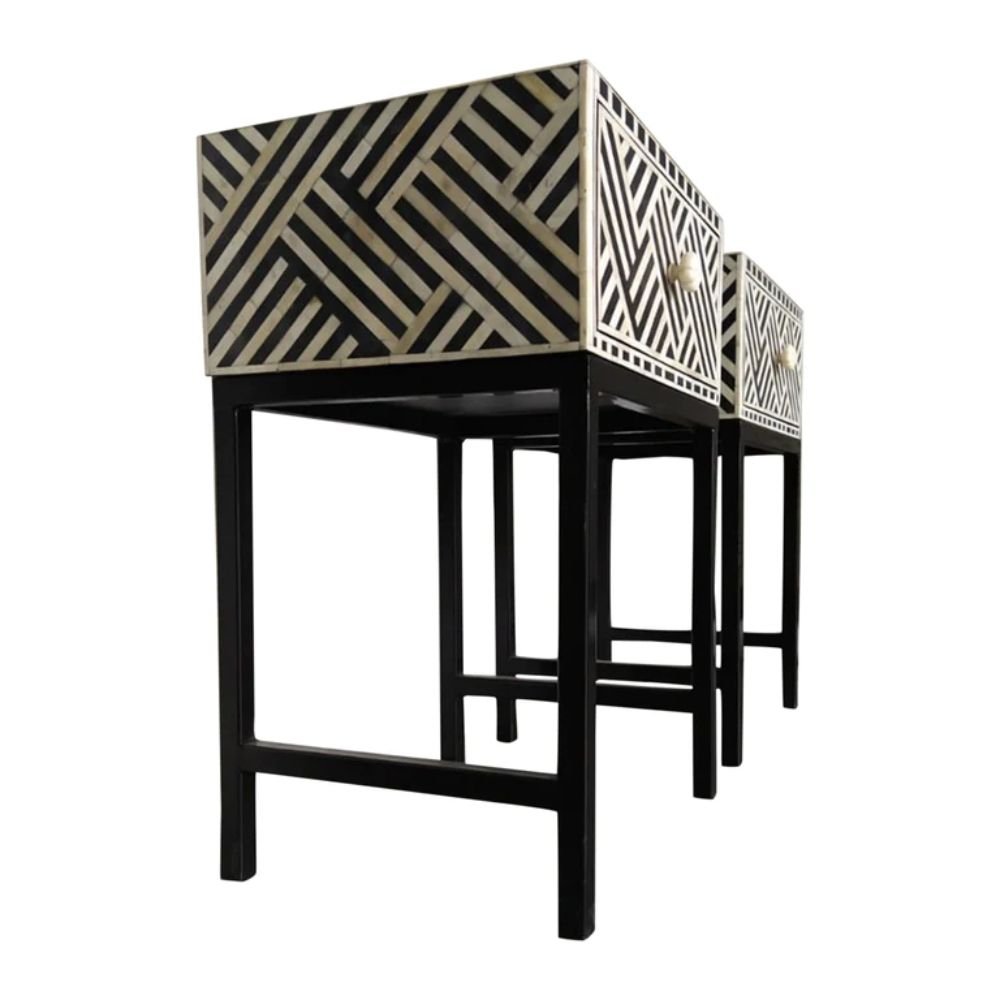Home Collections Jaipuri Bone Inlay Bedside Table with Steel Legs