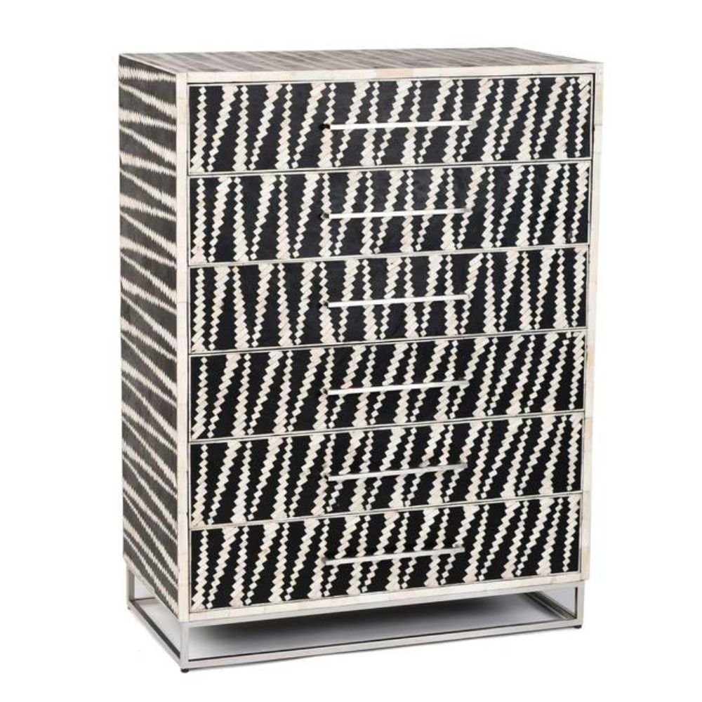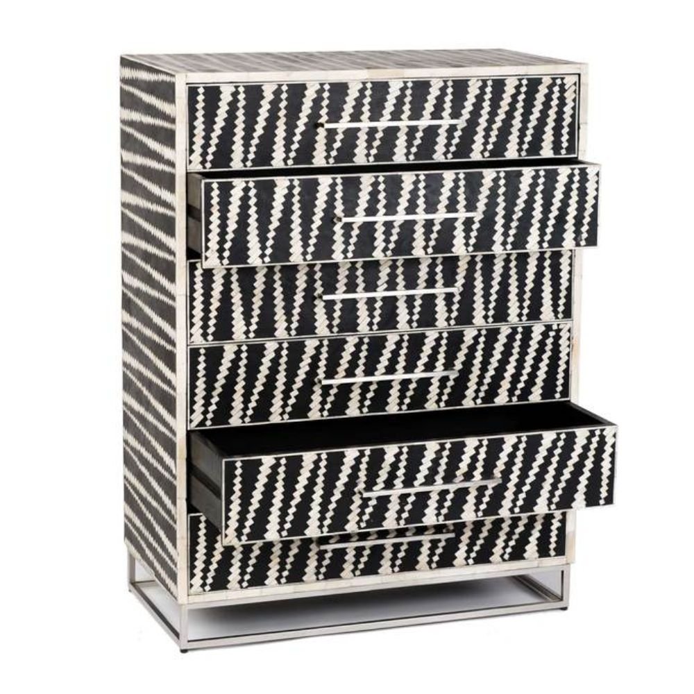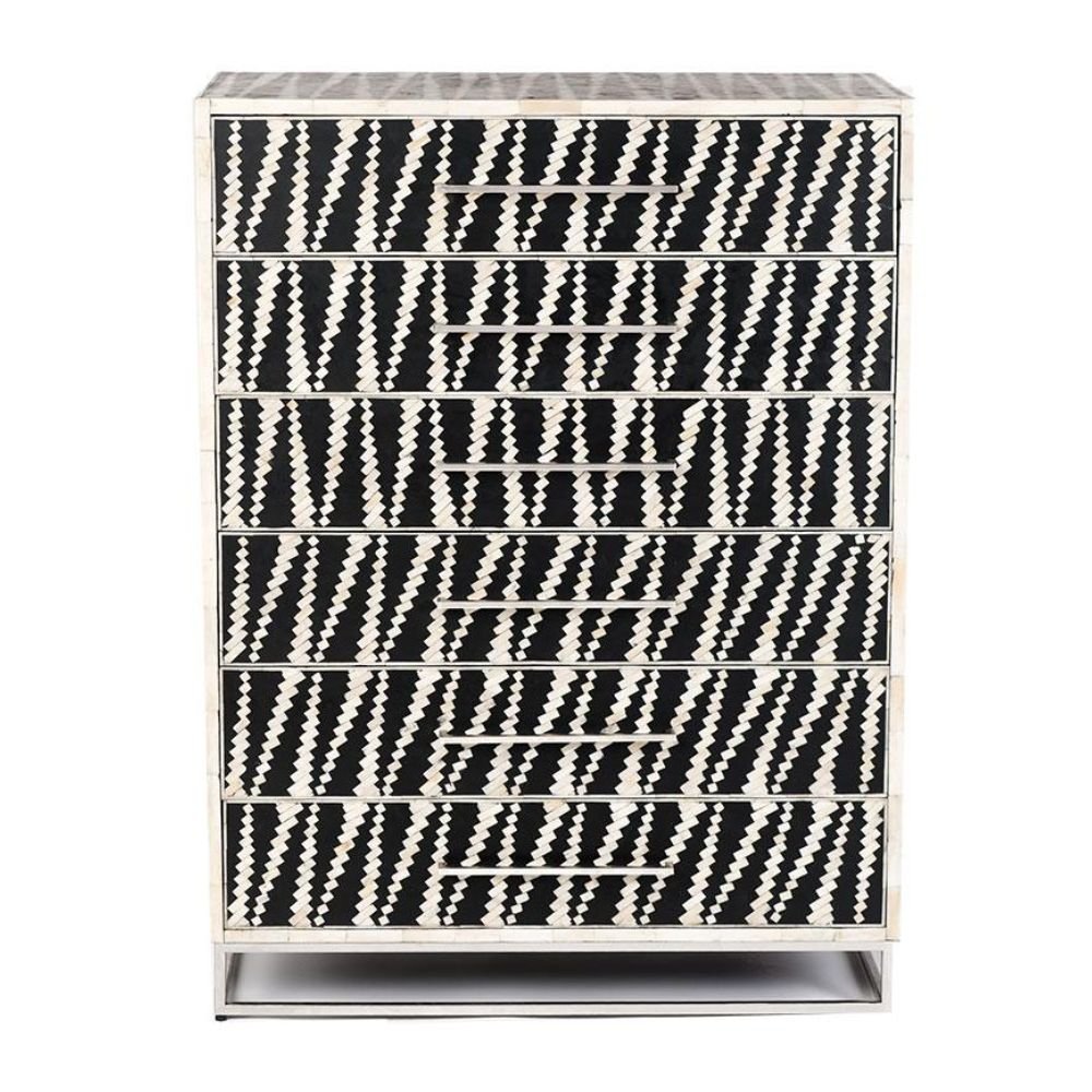 Jaipuri Bone Inlay Black and White Chest of 6 Drawer
