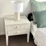 Jaipuri Bone Inlay Bedside Table with Steel Legs