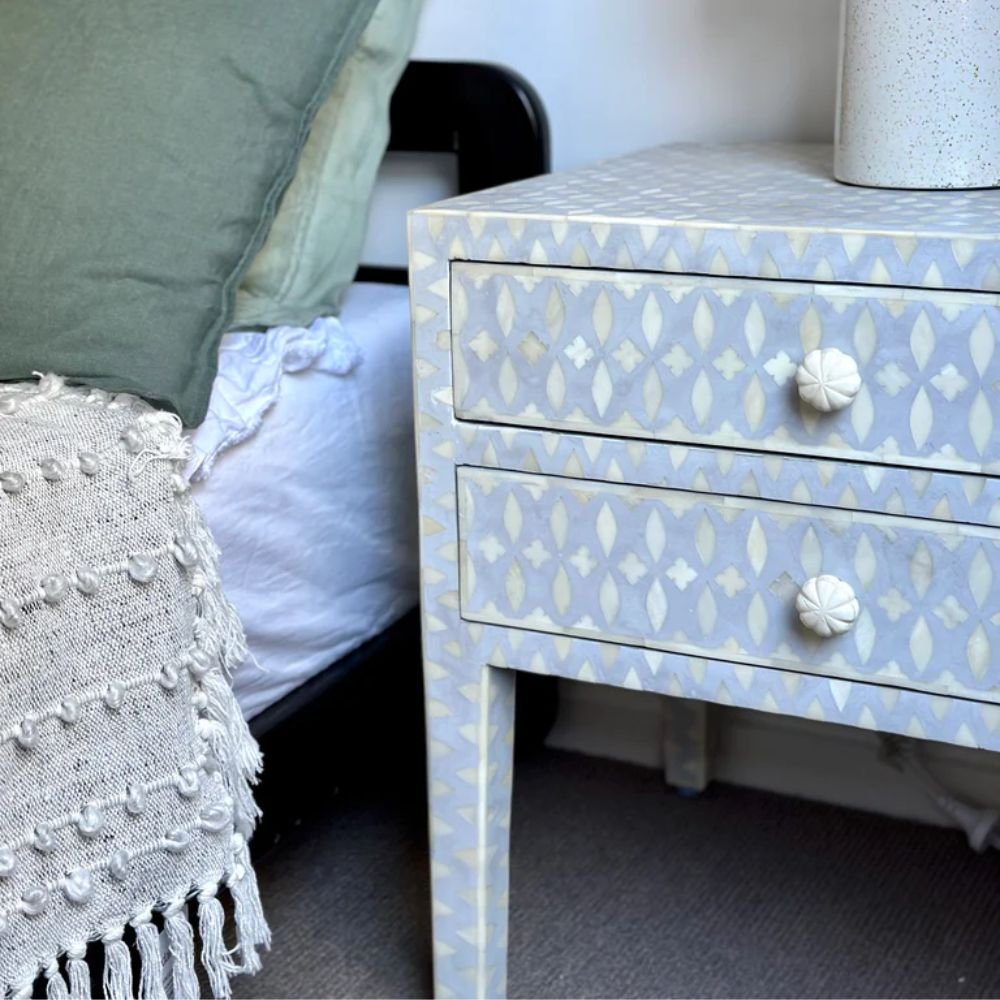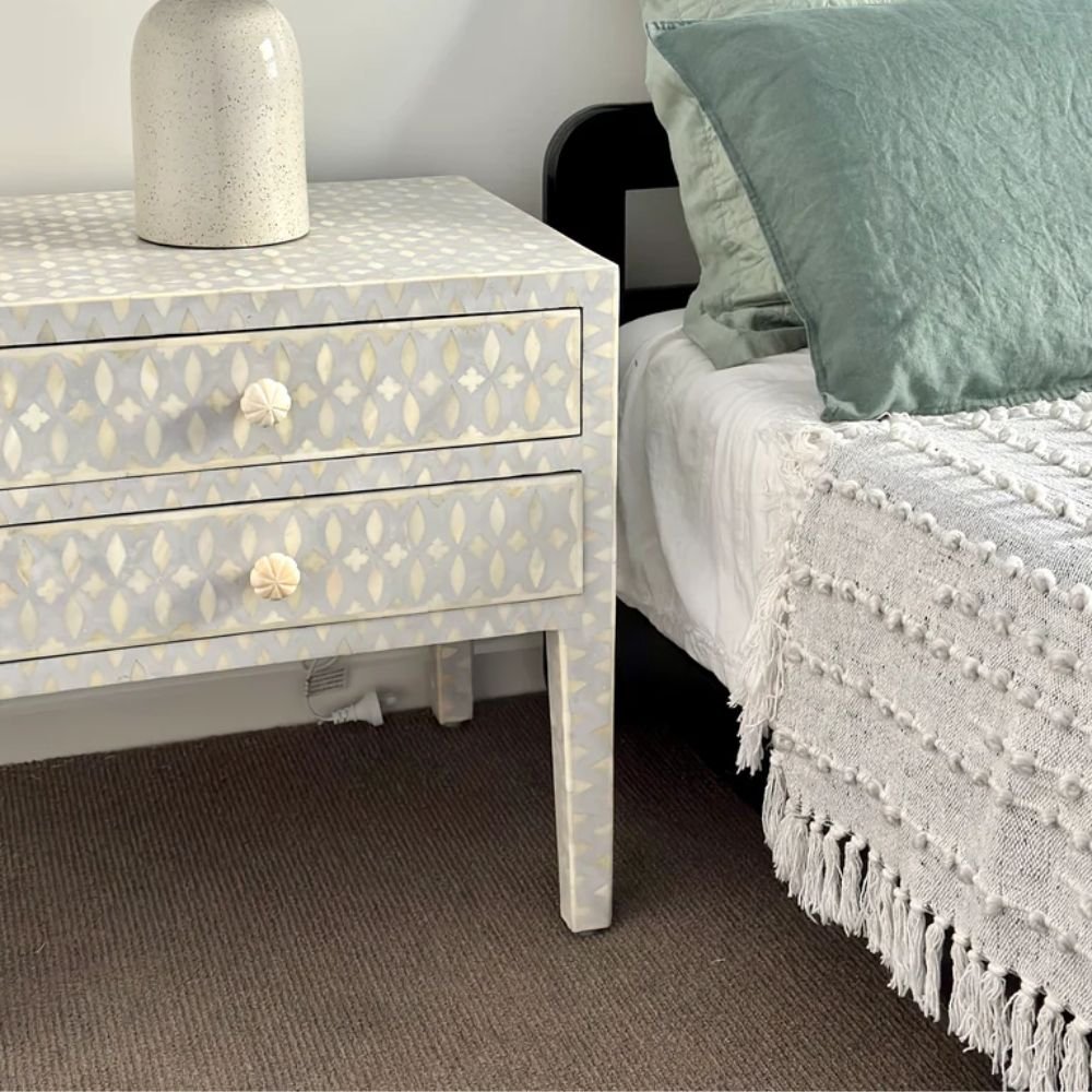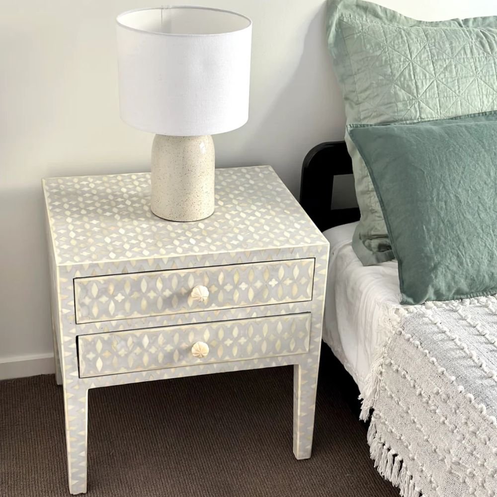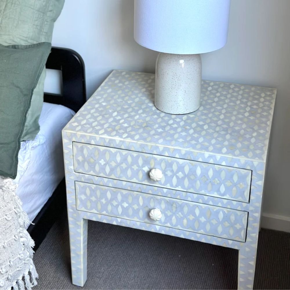 Home Collections Jaipuri Bone Inlay Lattice Bedside Tables Grey color