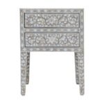 Jaipuri Mother of Pearl Floral Bedside Table 2-Drawers