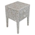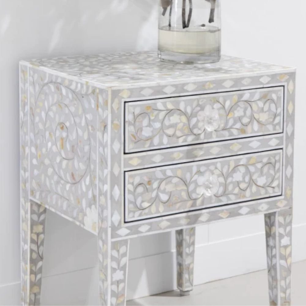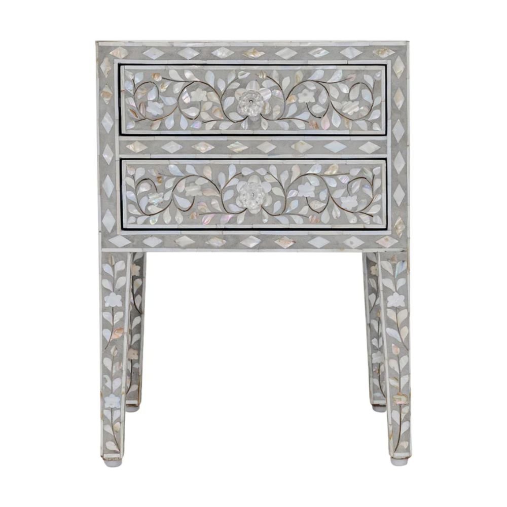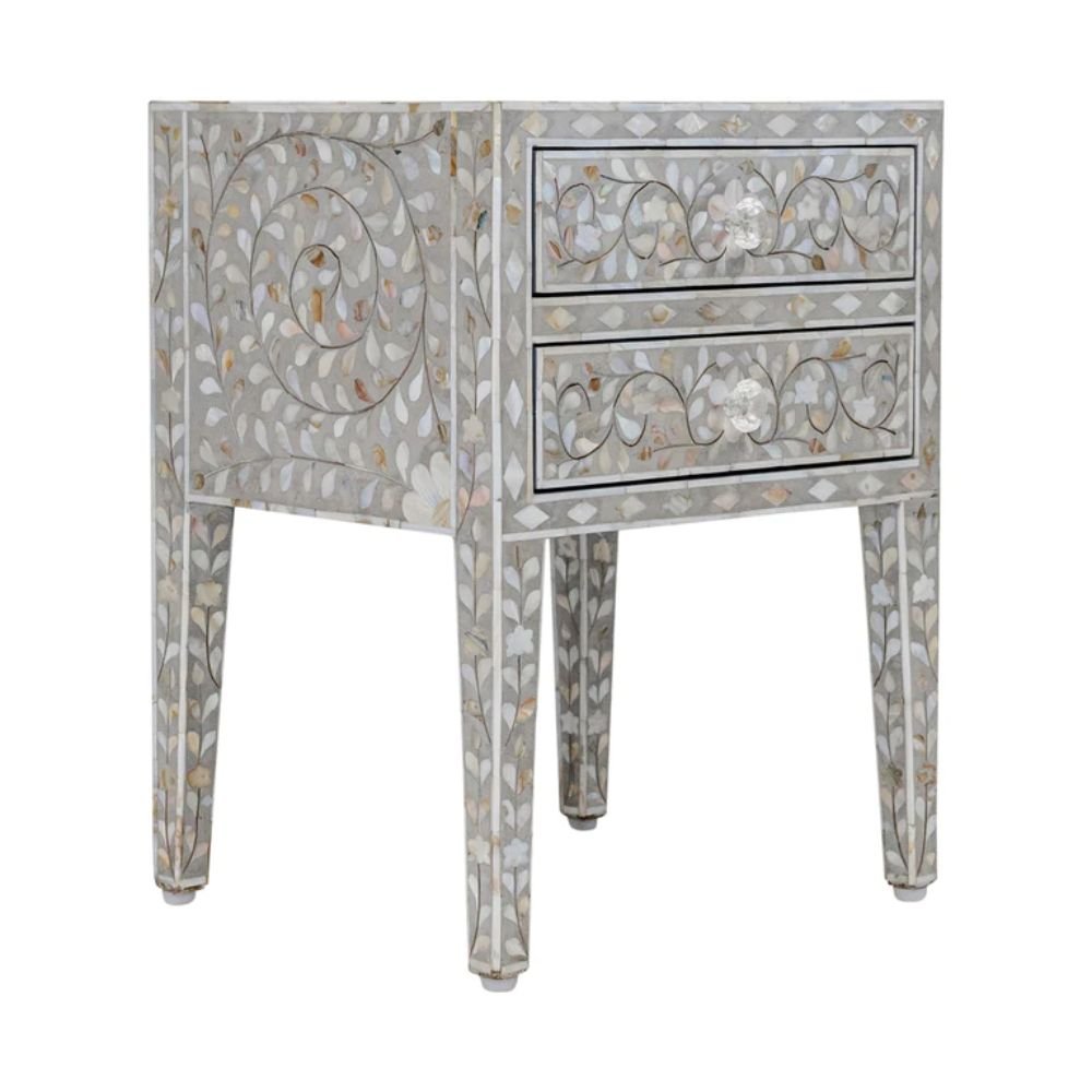 Home Collections Jaipuri Mother of Pearl Floral Bedside Table 2-Drawers