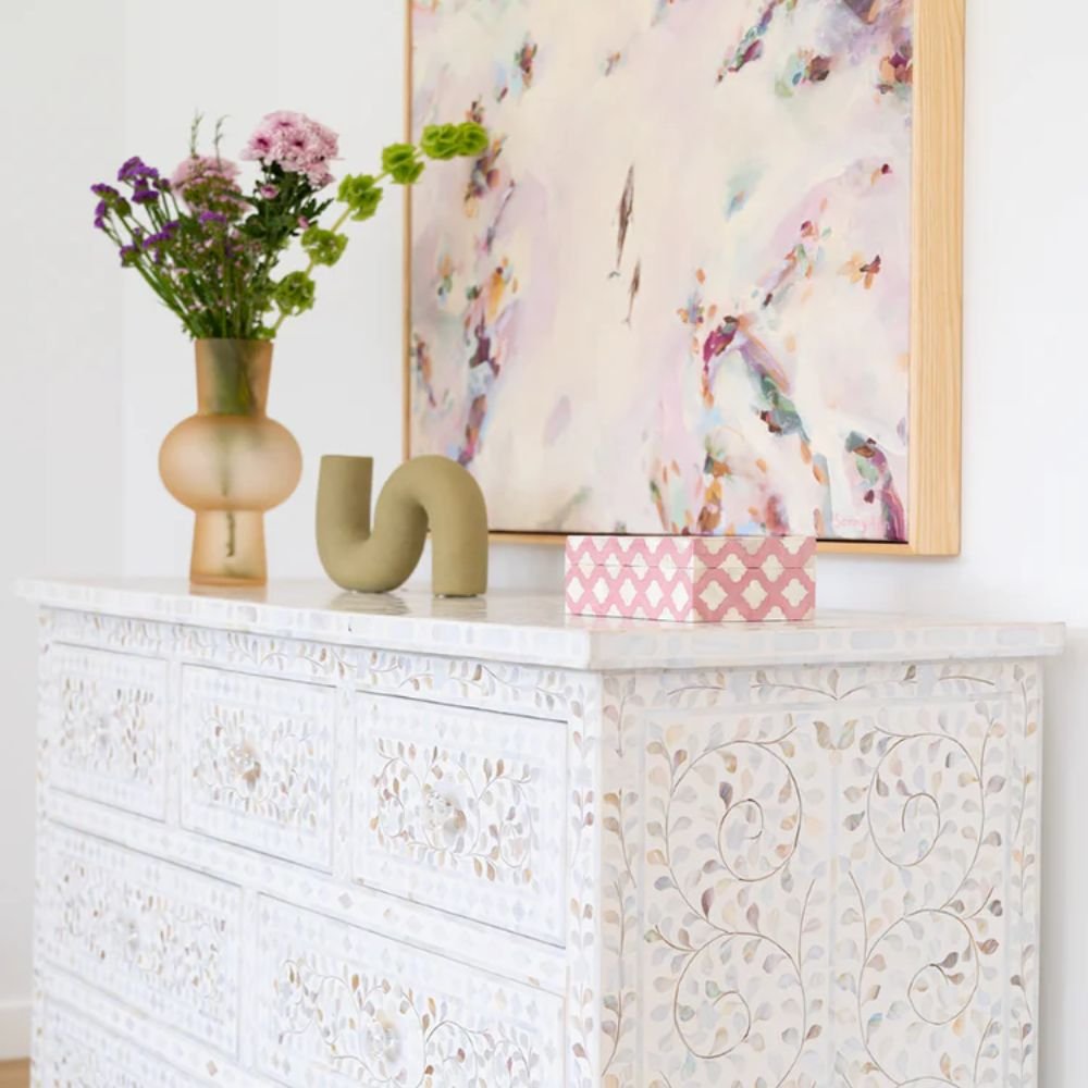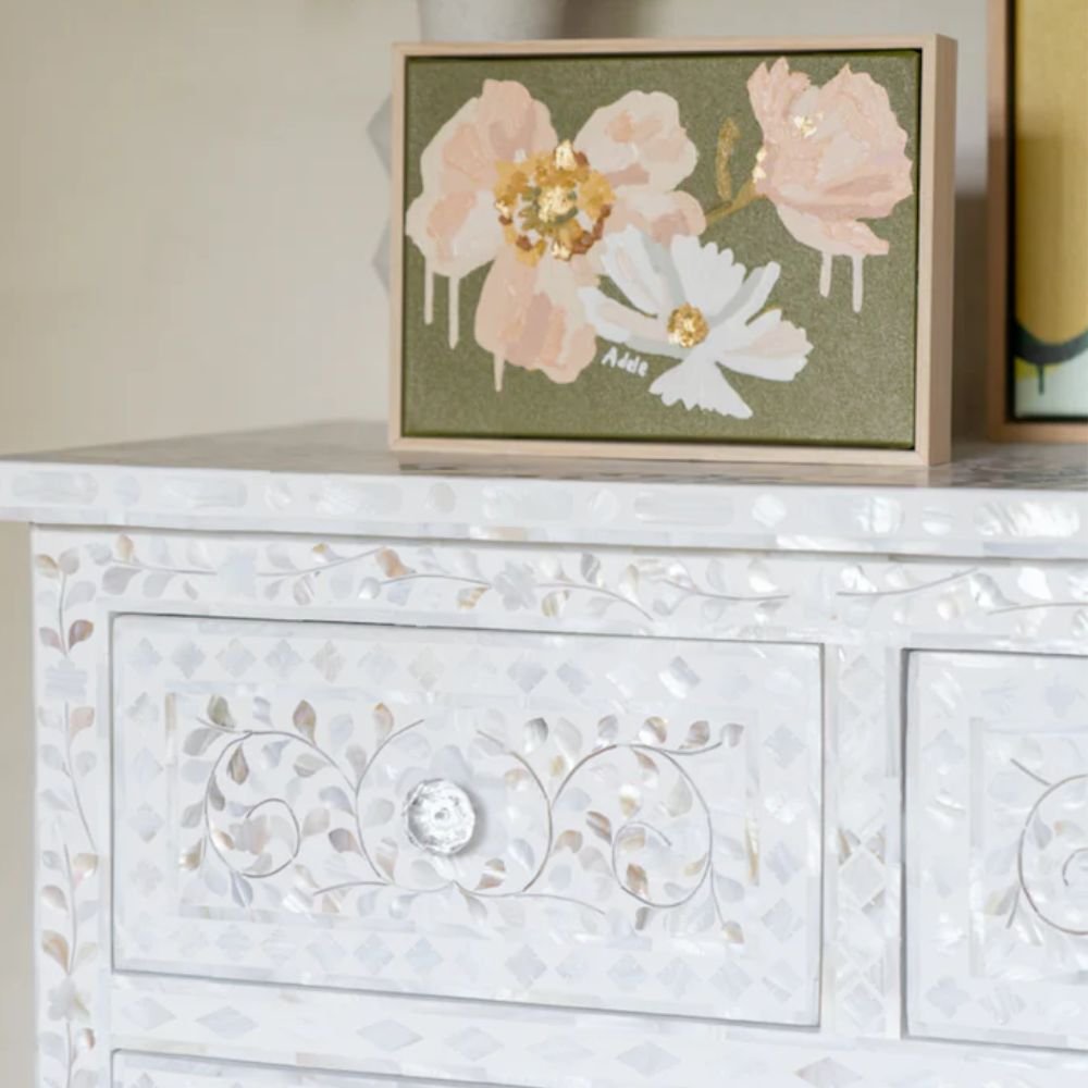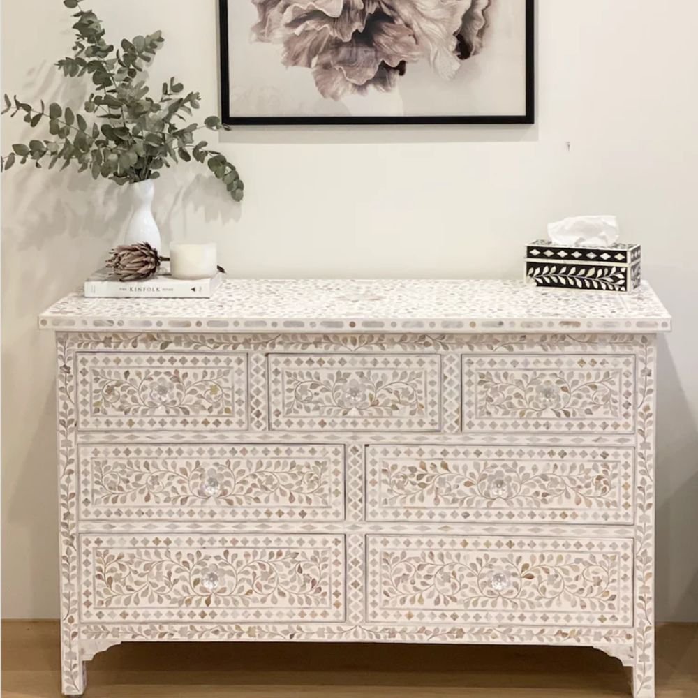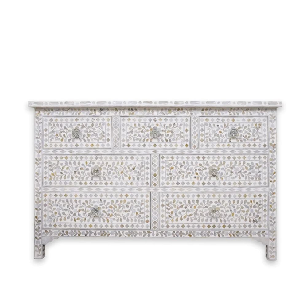 Jaipuri Mother of Pearl Floral Chest 7-Drawers