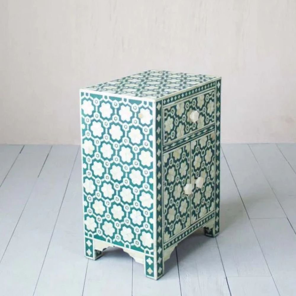 Home Collections Jodhpuri Bone Inlay Green Side Drawer
