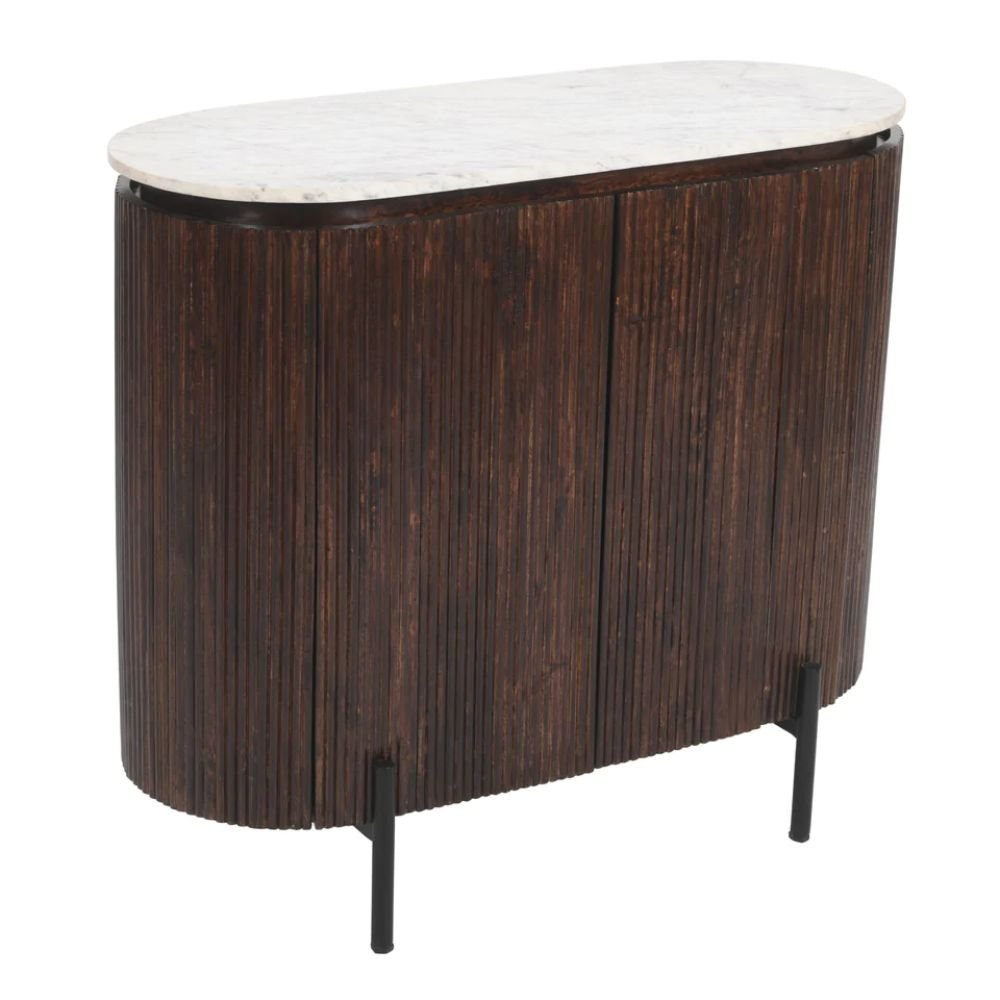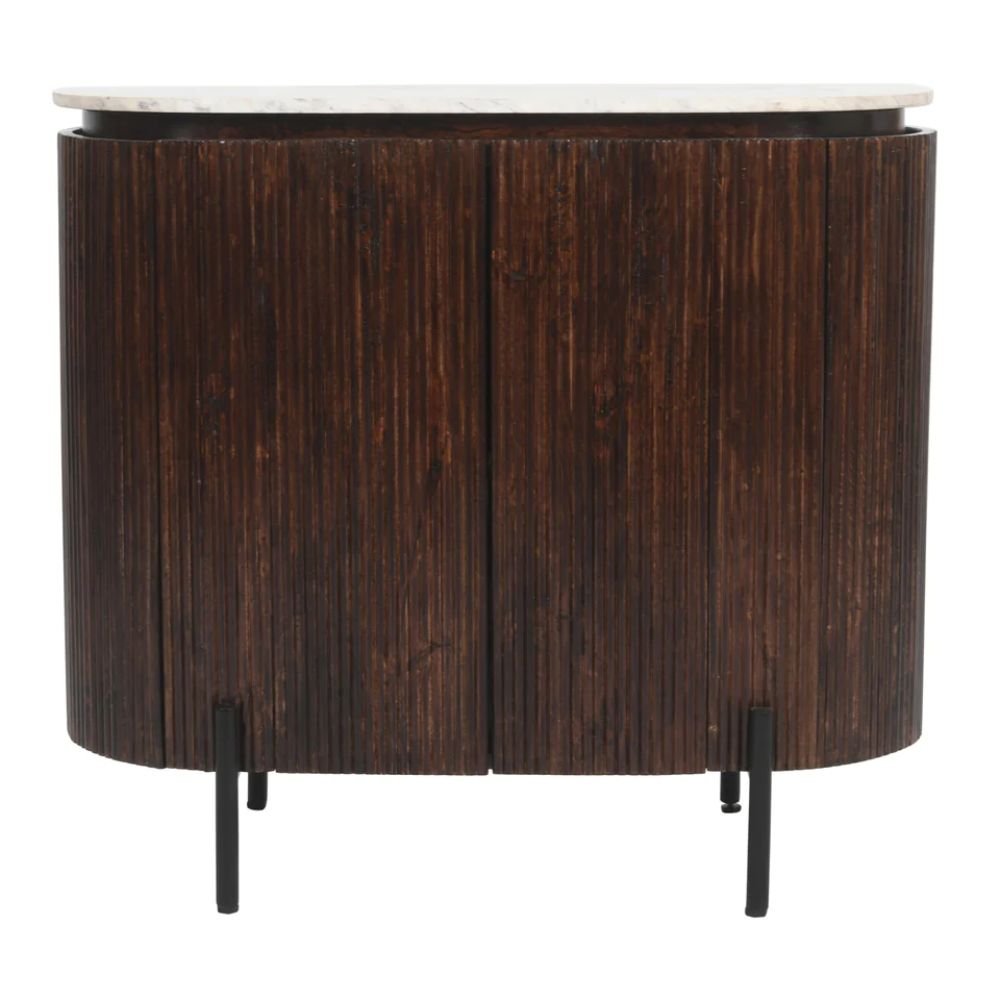 Jodhpuri Mango Wood Sideboard/Drinks Cabinet With Marble Top & Metal Legs