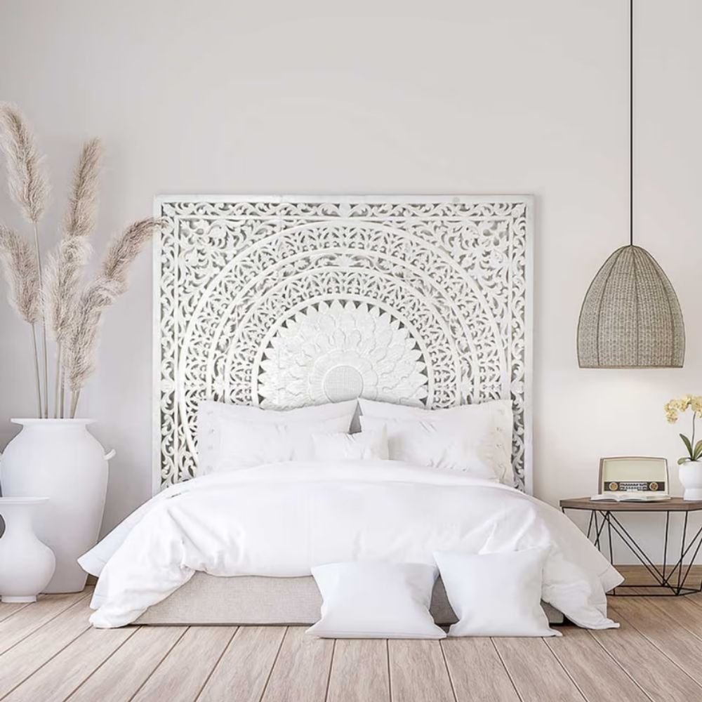 King Solid Wood Bed headboard with Hand Carving – Artisan Soul