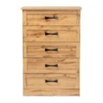 Luxury Modern 5-Drawer Tallboy Chest – Elegant Oak Brown Finish