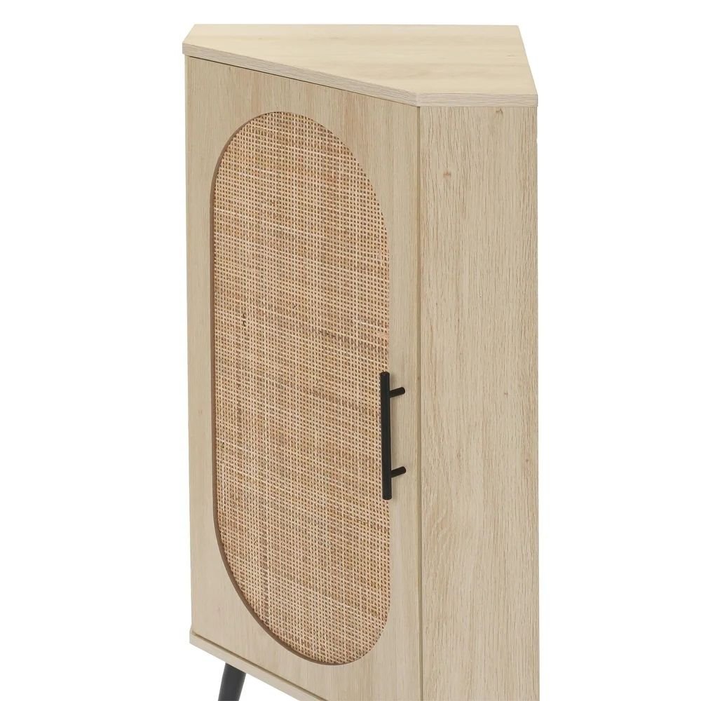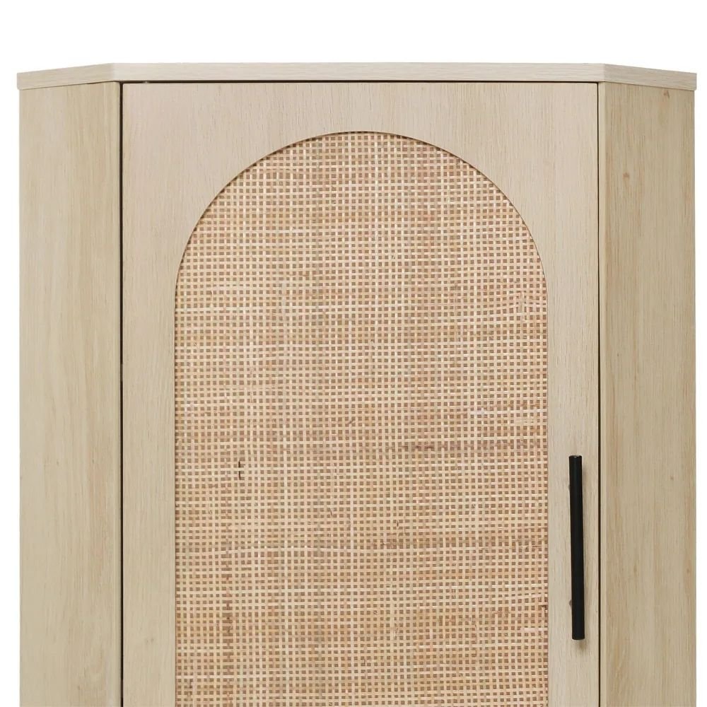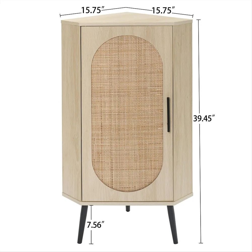 Luxury Modern Corner Storage Cabinet – Natural Wood & Cane Design