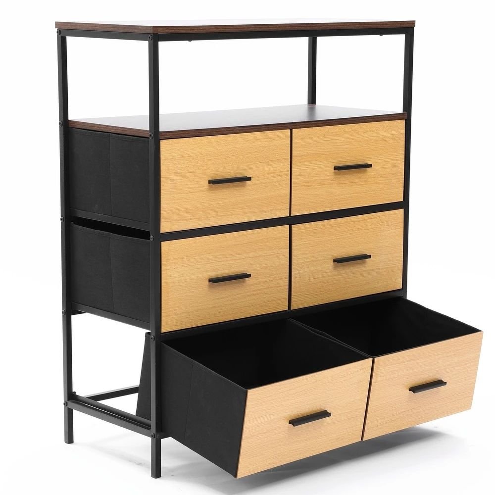 Industrial interiors, often featured in Architectural Digest, emphasize functional materials, expressive contrasts, and minimalist silhouettes. This chest captures those elements through its black metal frame, open shelving, and warm wood drawers, creating a design that is both stylish and practical. Its contemporary industrial character ensures versatility as trends evolve.