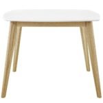 Finished in a fresh white tone and supported by solid wood legs, the table blends Scandinavian-inspired simplicity with modern functionality. Its understated presence allows it to adapt effortlessly to a variety of interiors, making it a versatile choice for everyday dining, casual gatherings, or styled breakfast spaces that feel light and welcoming.