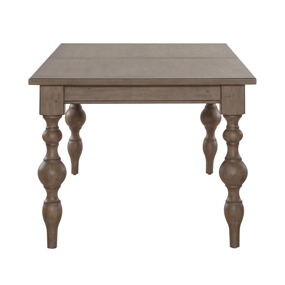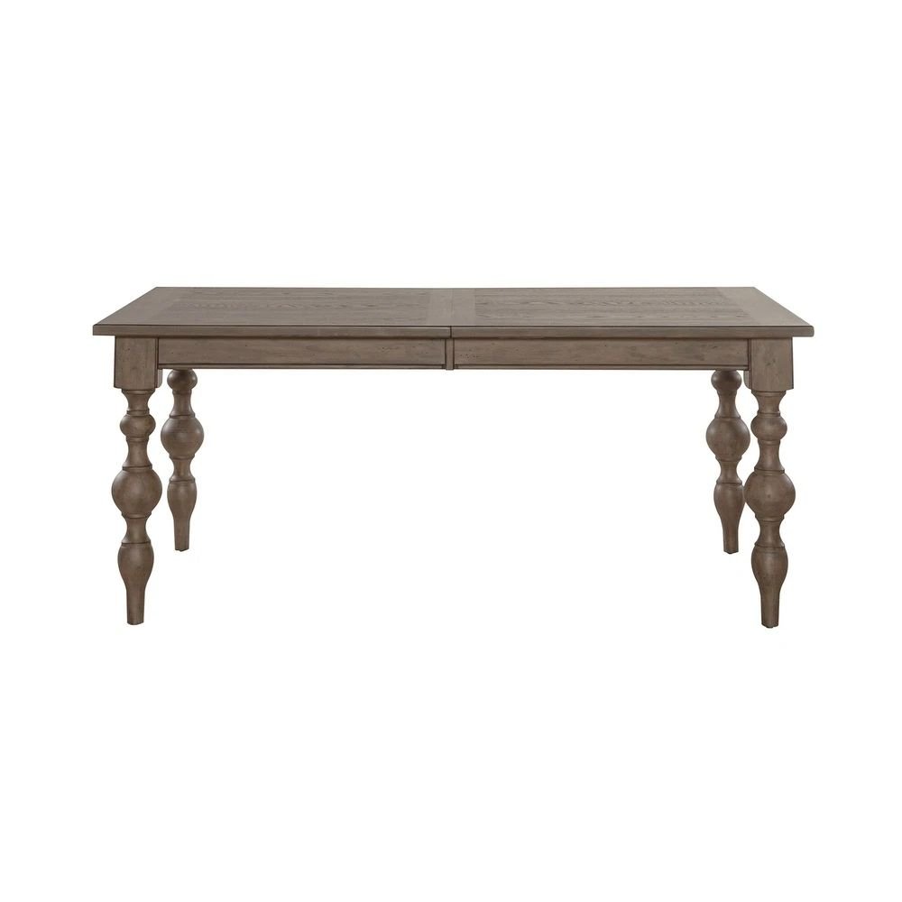 Turned legs introduce classic craftsmanship, adding dimension and sculptural interest to the overall design. The contrast between the smooth tabletop and the contoured leg profiles creates visual balance, enhancing the table’s traditional appeal. The dusty taupe finish softens the look, allowing the table to feel elegant yet approachable, with a surface that reflects light gently and adds visual warmth to the dining space.