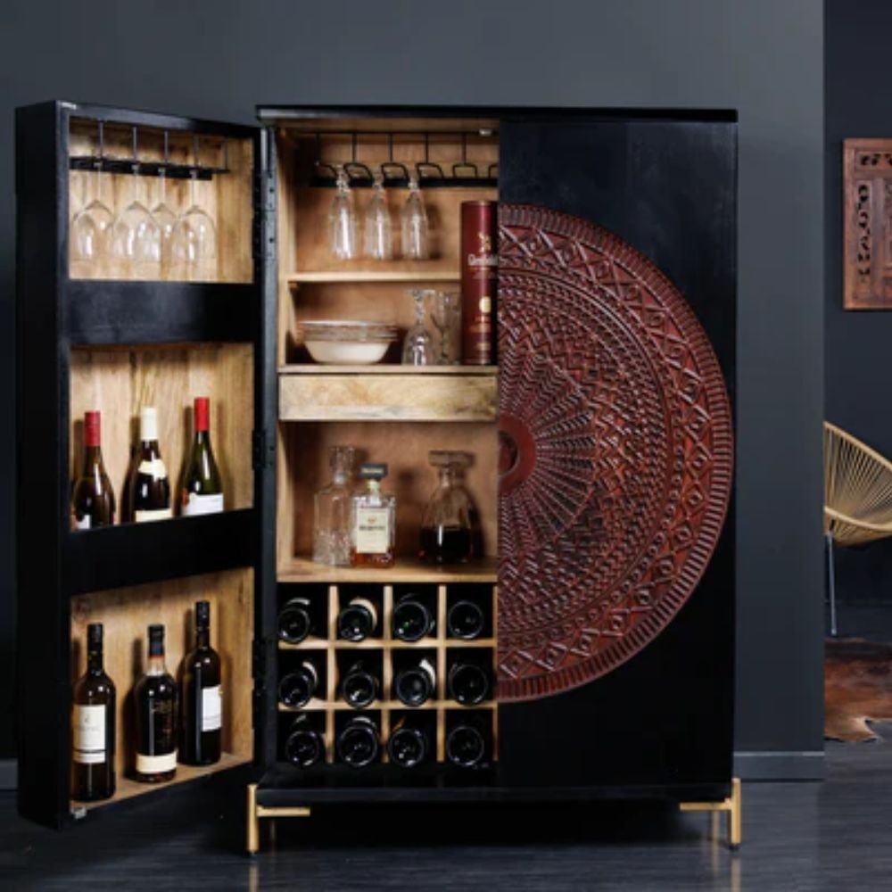Mandala Solid Wood Bar Cabinet