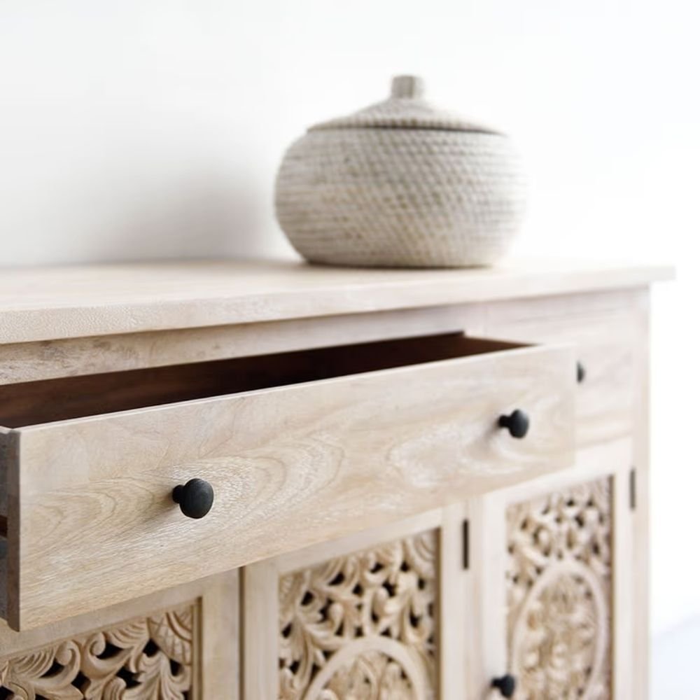 Equipped with convenient features such as adjustable shelves, smooth-gliding drawers, and sturdy hardware, our cabinet is not just a storage solution but a practical and stylish statement piece. The spacious top surface offers additional display space for your favorite art pieces, vases, or other decorative items.