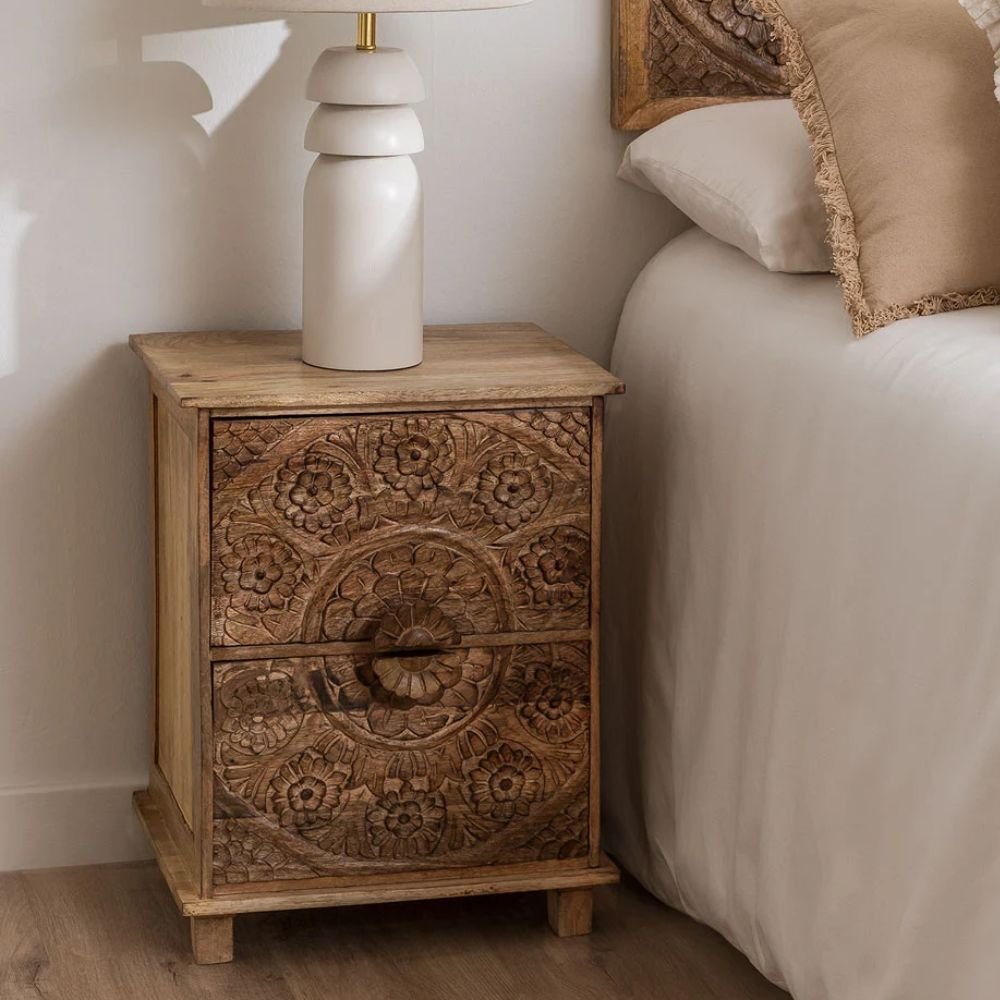 Mango Wood Bedside Table with Drawers Wiluna