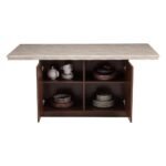 Integrated Pedestal Storage: Features two hidden doors opening to four internal shelves to keep your fine china and linens organized.
