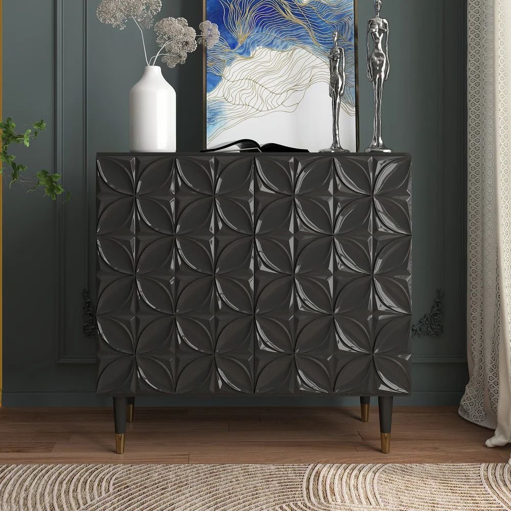 Avant-Garde Media Storage Accent Cabinet with 3D Texture – Onyx Petal