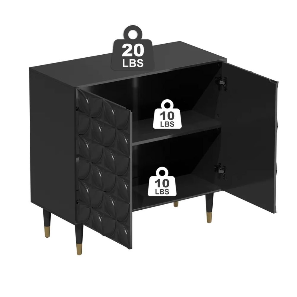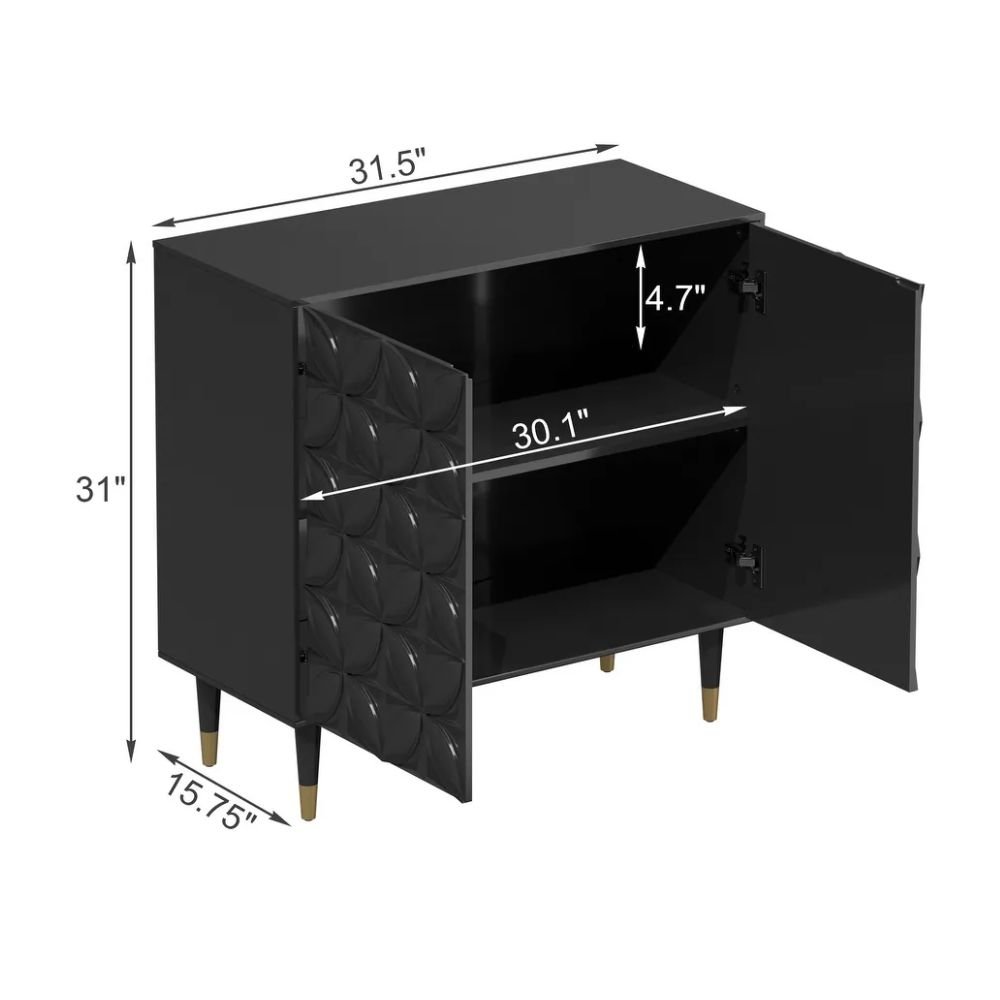 The height of 31 inches is ideal for creating a layered vignette with tall table lamps and curated tabletop books. By introducing the bold obsidian tones of this media storage accent cabinet, you add a layer of sophistication that feels both grounded and airy. Whether styled with minimalist ceramics or lush greenery, the impact of the wood texture creates an inviting atmosphere that reflects a high standard of living and a keen eye for contemporary design. The 3D door detailing allows for dynamic light and shadow play, making the piece a versatile asset as your personal style evolves over time.