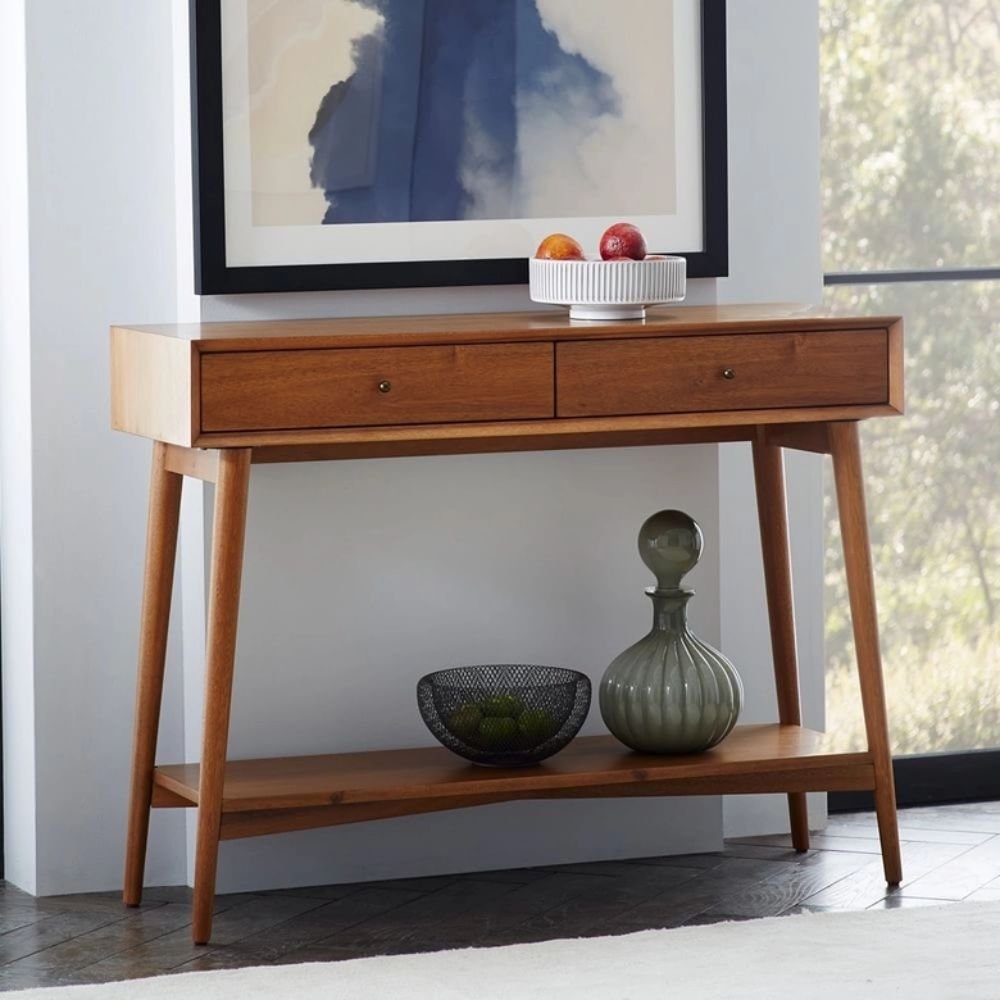 The sleek and modern design of the console table makes it a versatile addition to any room. The carefully chosen finishes and refined details add a touch of sophistication, transforming your space into a haven of organization and style.