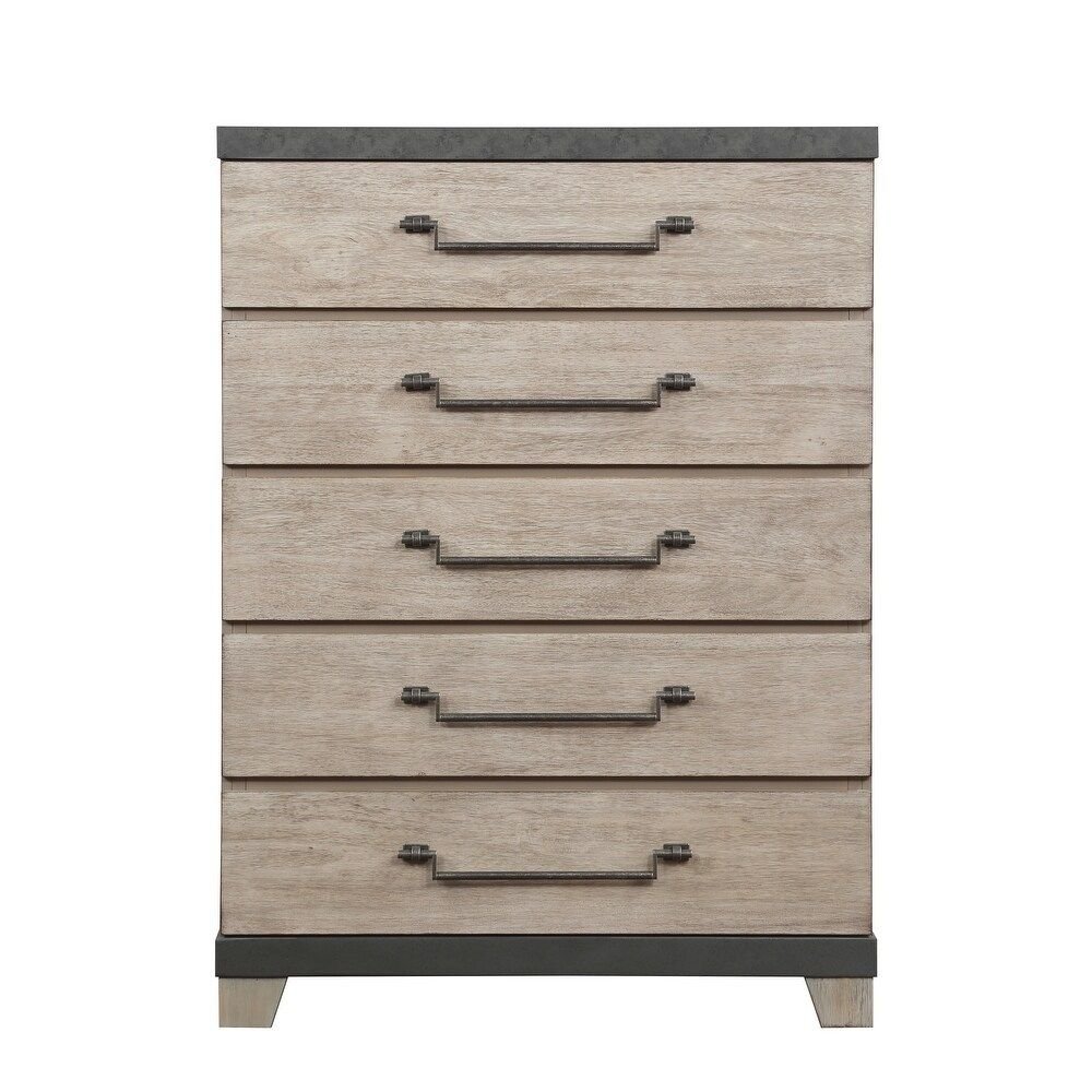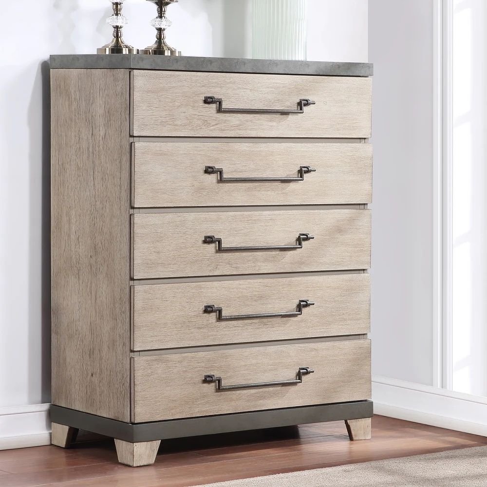 Home Bedroom Chest of drawers Modern Chest – Solid Wood 5-Drawer Weathered Oak Finish