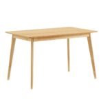 Crafted from solid wood, this dining table showcases a clean rectangular silhouette that works seamlessly in modern and contemporary interiors. The natural finish allows the character of the wood grain to remain visible, adding organic texture without visual heaviness. Designed for dining rooms, open-plan kitchens, and everyday family use, the table offers generous surface space while maintaining a visually light presence. The design intention focuses on simplicity, proportion, and material honesty, resulting in a table that feels timeless and adaptable across changing interior styles.