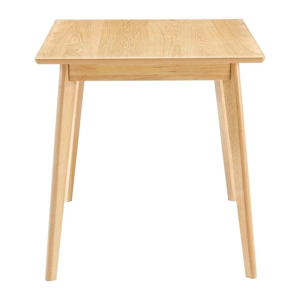 The solid wood legs are gently angled to provide excellent stability while maintaining an open and uncluttered profile beneath the table. This leg placement allows comfortable seating along the length of the table and ensures easy movement around it. The under-table clearance supports flexible chair arrangements and enhances overall usability, making the table practical for both intimate meals and larger gatherings.