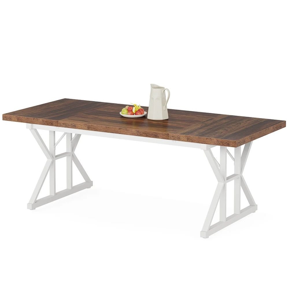Crafted for everyday dining as well as social gatherings, this solid wood dining table offers generous seating for six to eight people. The rich brown tabletop introduces warmth and natural texture, while the painted white base adds brightness and architectural contrast. Its clean lines and balanced proportions reflect a Mid-Century Modern influence that feels familiar yet refined. Designed to anchor dining rooms and open-plan kitchens alike, the table provides ample surface space without overwhelming the room. The overall design intention focuses on comfort, durability, and visual harmony, making it a dependable centerpiece for daily use.