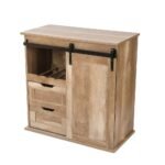 The smooth-sliding barn door reveals adjustable storage that adapts to your needs — whether you’re storing wine bottles, glassware, or kitchen accessories. The broad wooden top is sturdy enough for serving trays, décor, or even a home bar display, making it perfect for both everyday use and entertaining guests.