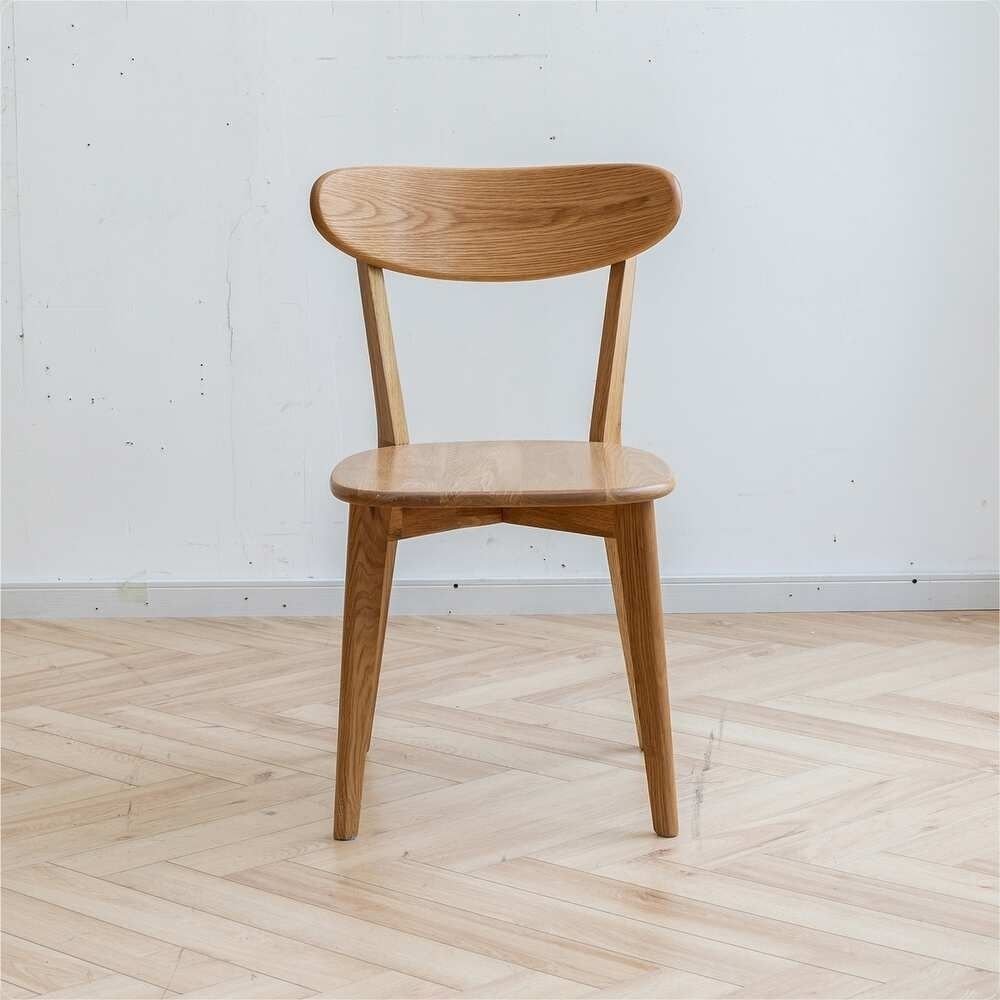 This modern solid wood oak dining chair is designed to bring warmth, simplicity, and refined craftsmanship into contemporary dining spaces. Its softly curved backrest and natural wood tones create a calm and inviting presence that feels effortlessly balanced.