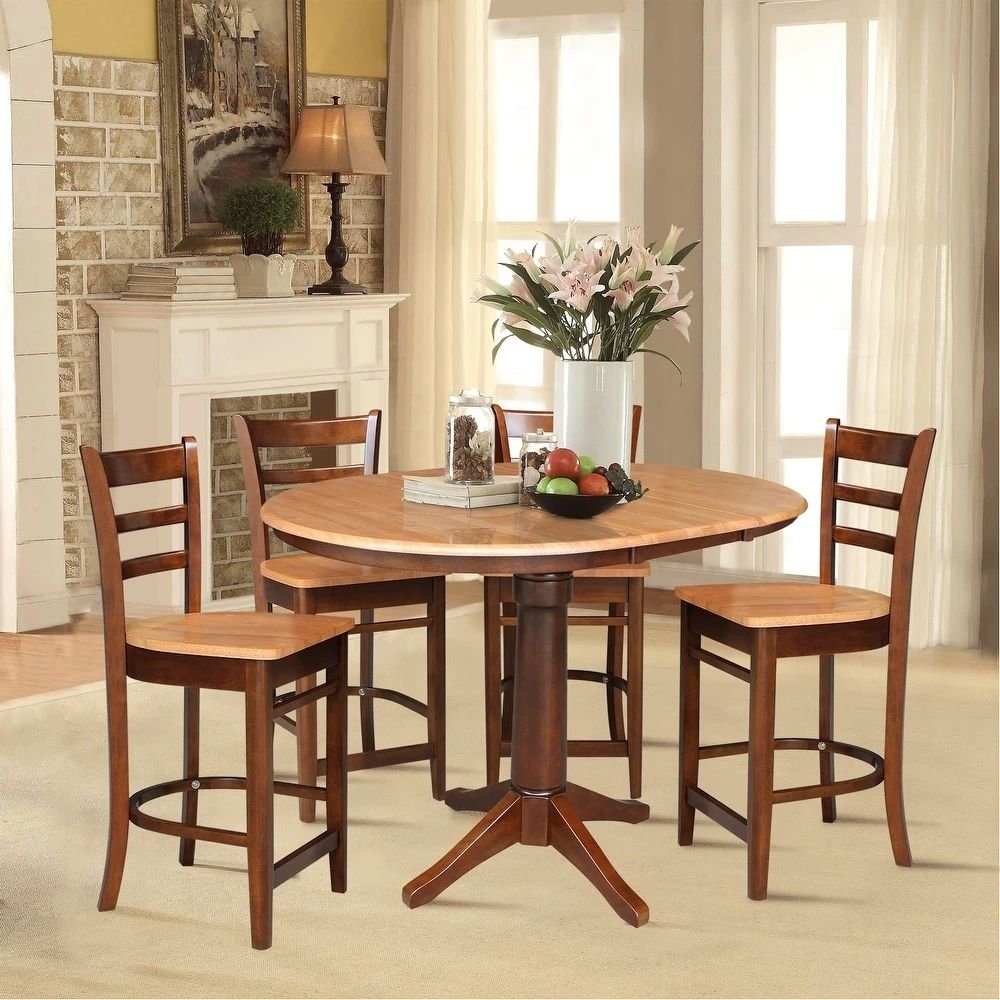 Designed for traditional and transitional interiors, this solid wood dining table reflects a careful balance between classic craftsmanship and adaptable functionality. The round tabletop encourages natural conversation and connection, making it well suited for family dining rooms, breakfast areas, or compact dining spaces where comfort and flow are essential. The integrated extension feature allows the table to transition effortlessly from everyday use to accommodating guests, offering flexibility without disrupting the overall aesthetic. Finished in a rich espresso tone with natural undertones, the table is intended to feel timeless, grounded, and dependable while enhancing the warmth of the surrounding interior.