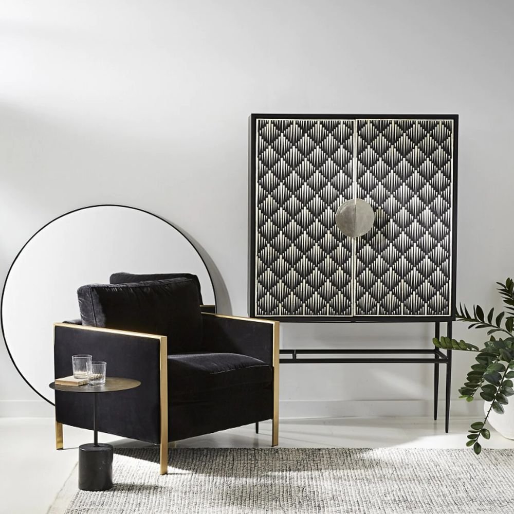 Home Collections Rajasthani Bone Inlay Bar Cabinet Black
