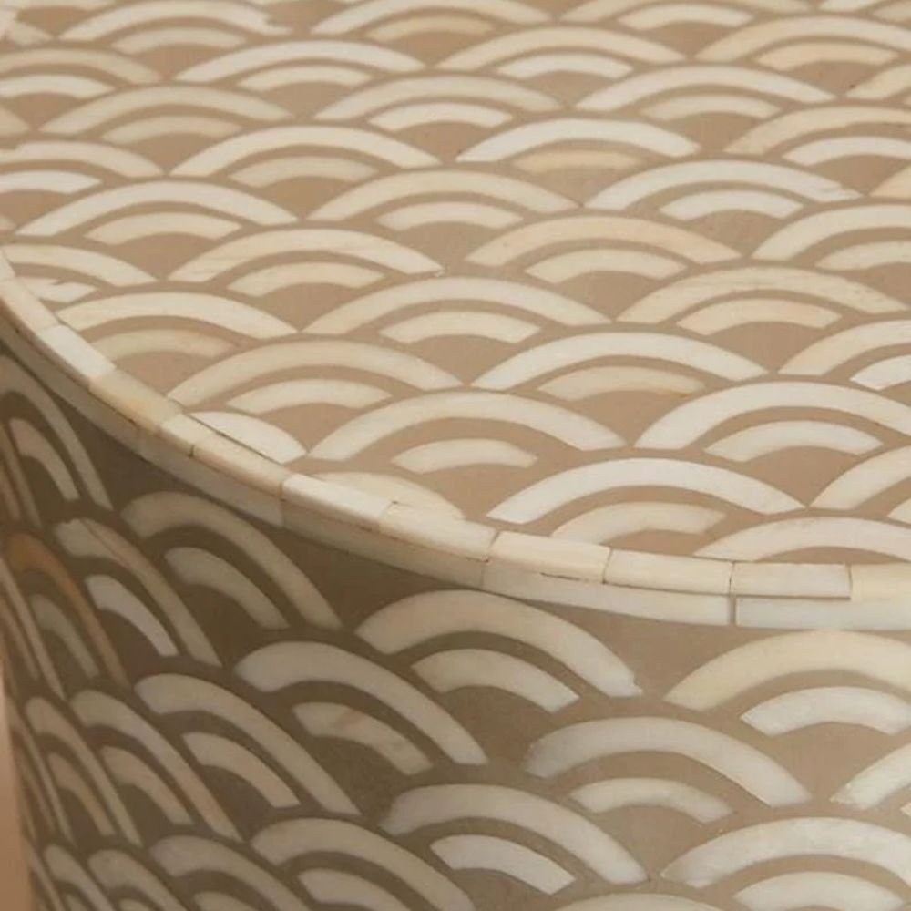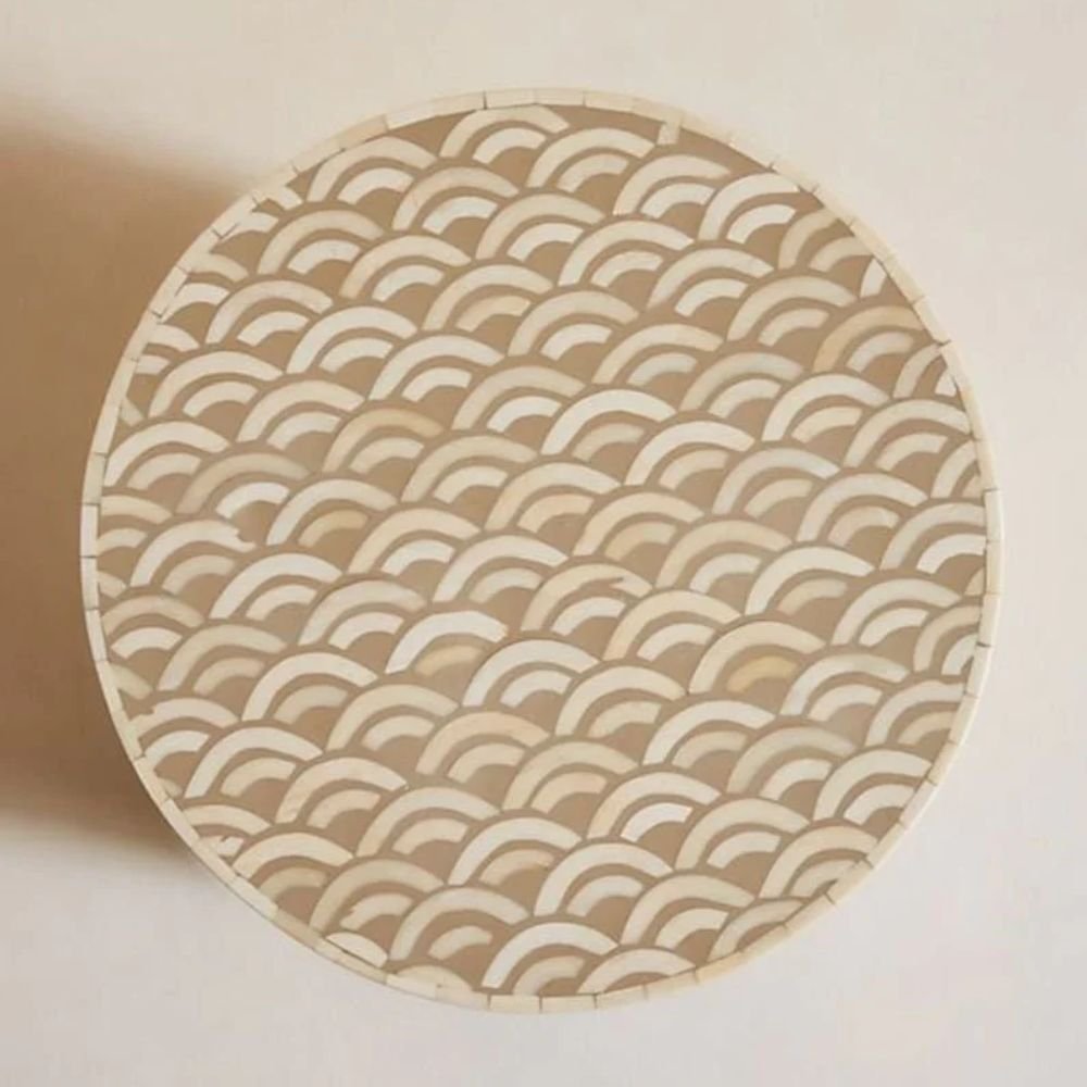 Rajasthani Bone Inlay Diamond Design Round End Table