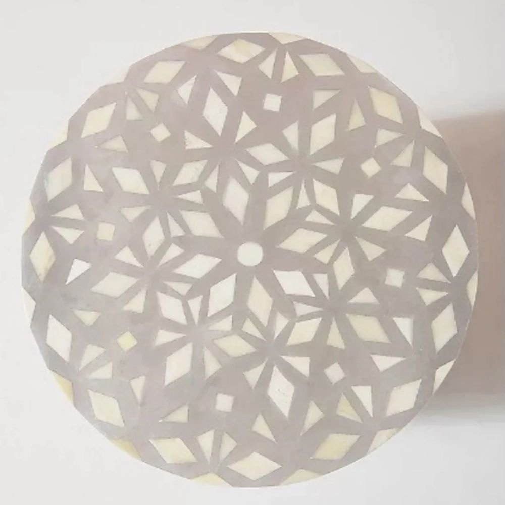 Home Collections Rajasthani Bone Inlay Diamond Design Round End Table