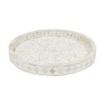 Home Collections Rajasthani Bone Inlay Floral White Round Tray