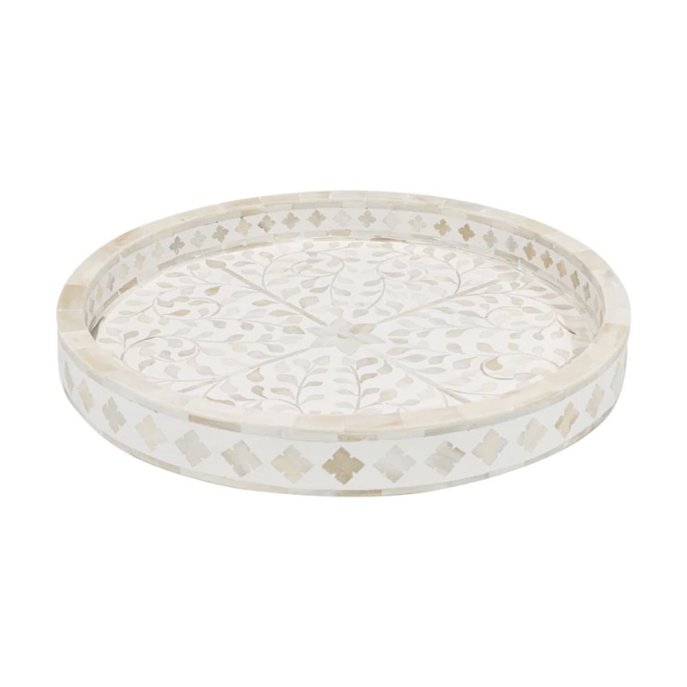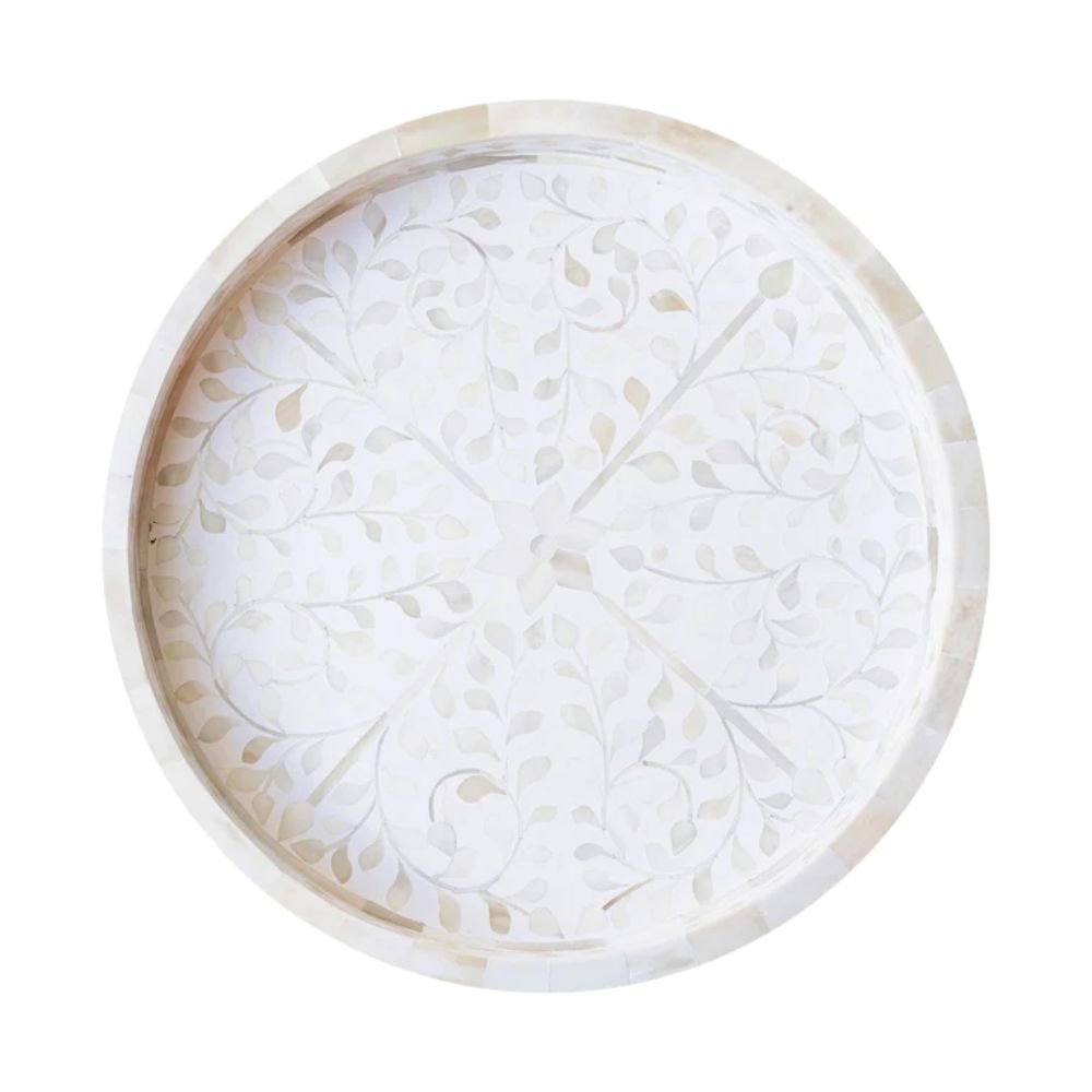 Rajasthani Mother of Pearl Floral White Tray