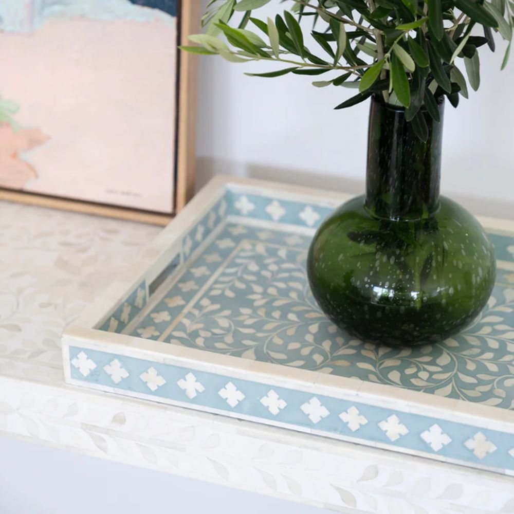 Home Collections Rajasthani Bone Inlay Floralan Dusty Blue Tray