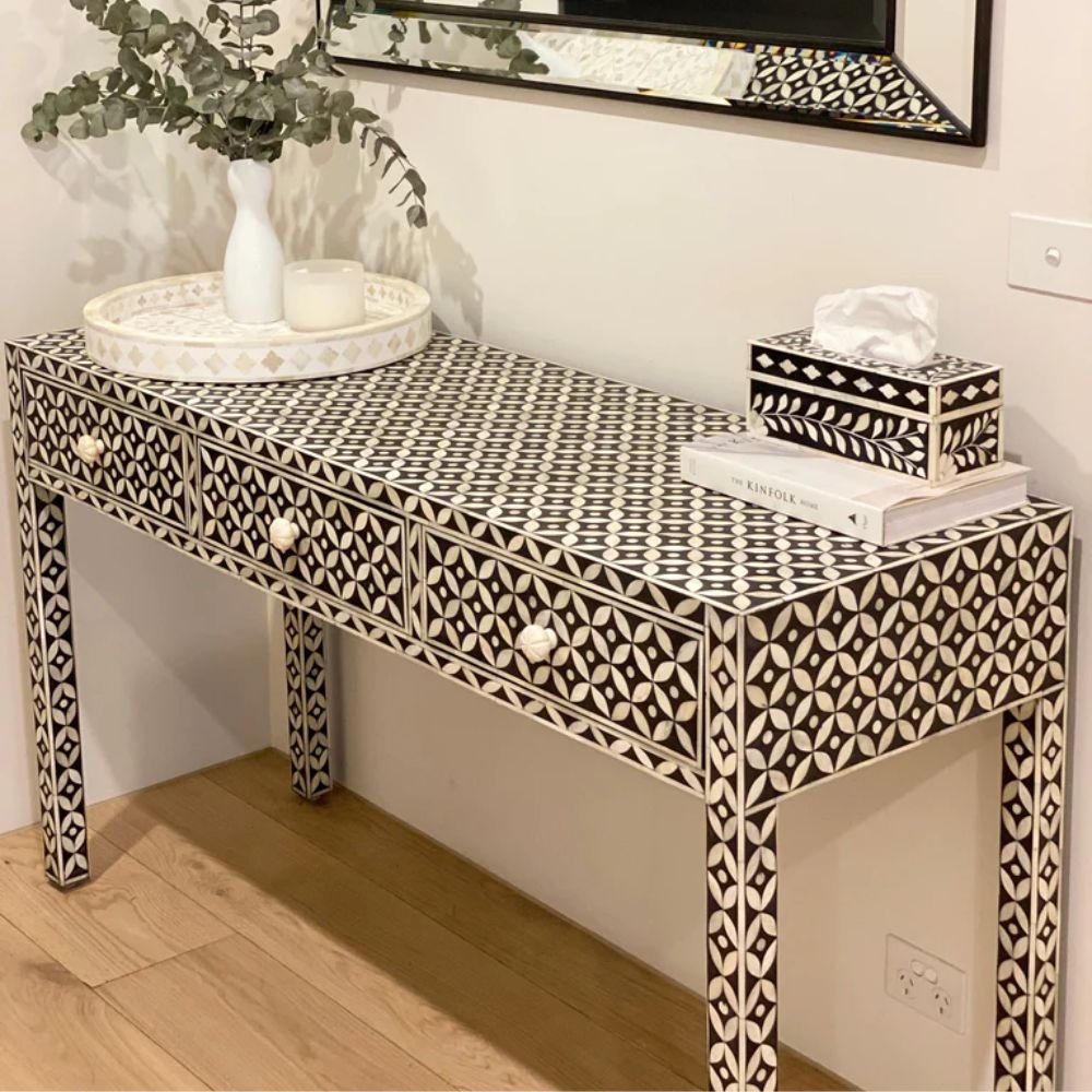 Home Collections Rajasthani Bone Inlay Geometric Black Console Table