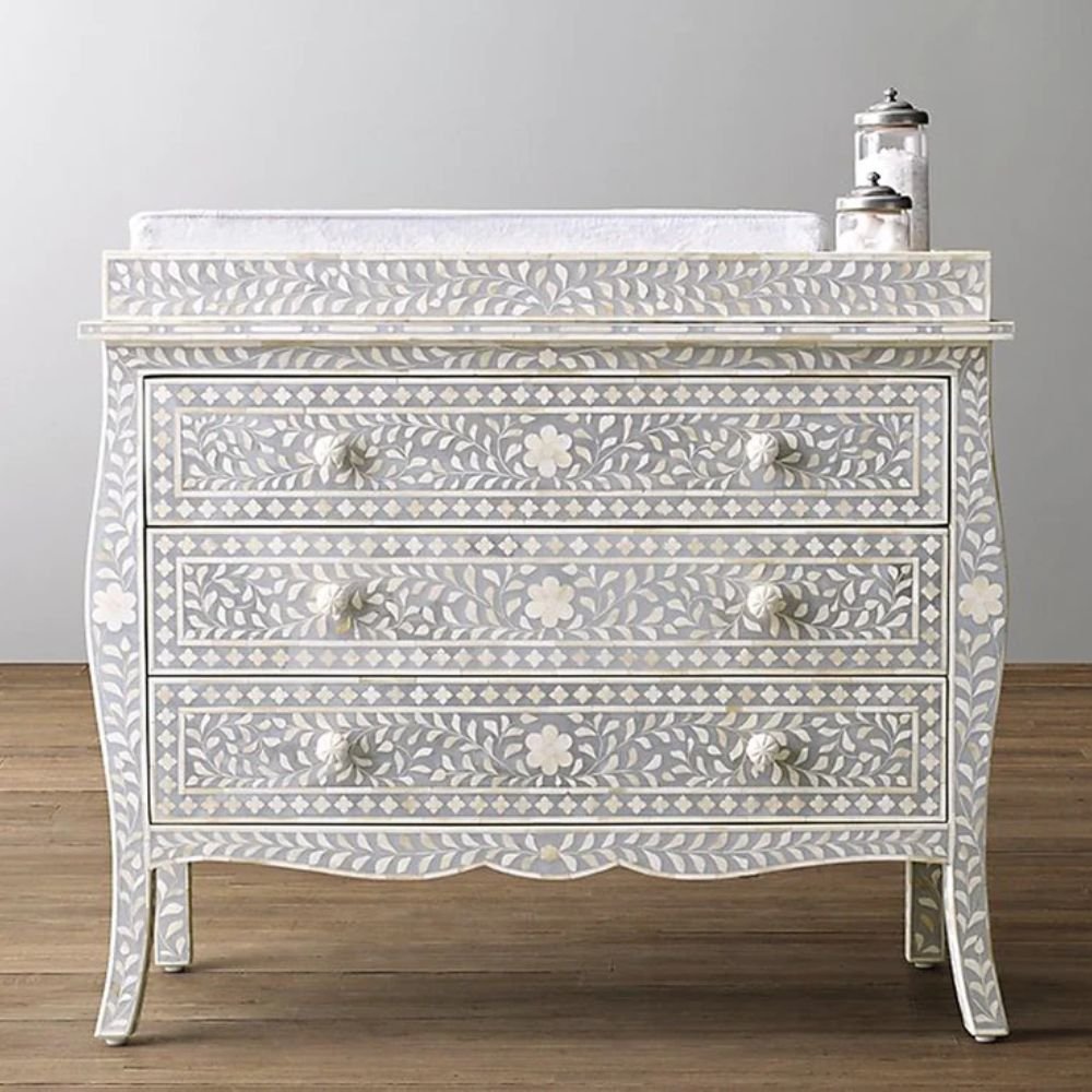 Home Collections Rajasthani Bone Inlay Grey Chest of 3-Drawer