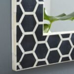 Rajasthani Bone Inlay Honeycomb Mirror Black