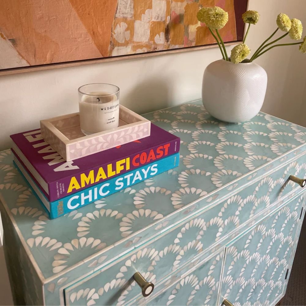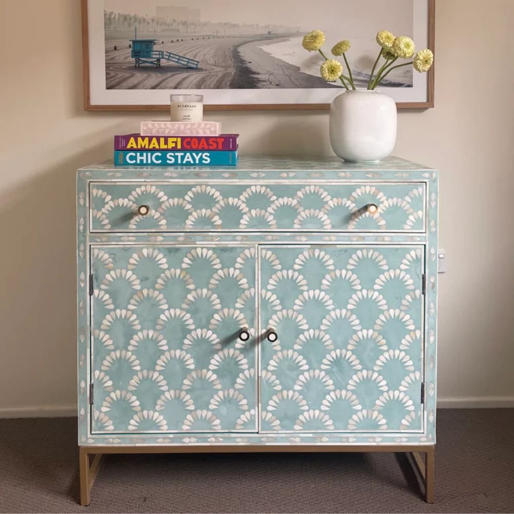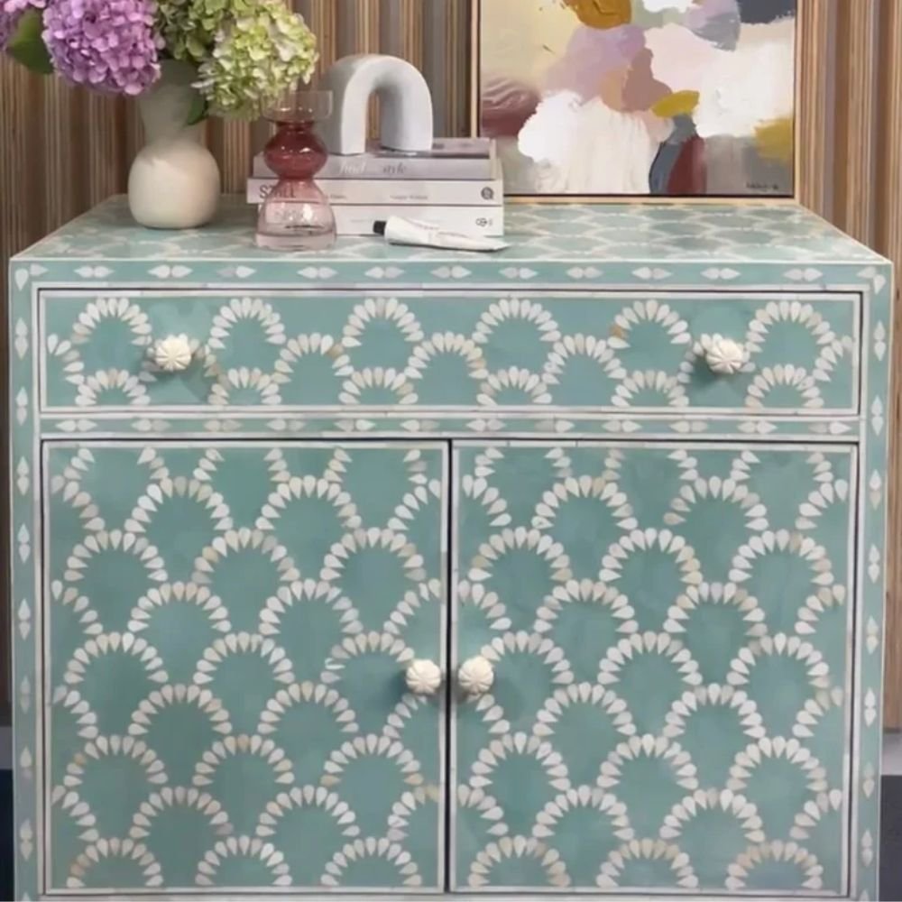 Home Collections Rajasthani Bone Inlay Shell Pattern Green Sideboard