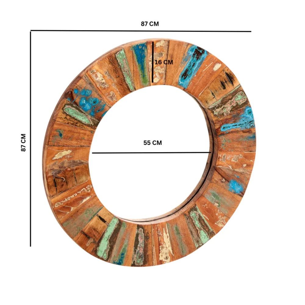 Rajasthani Reclaimed Boat Round Mirror Large