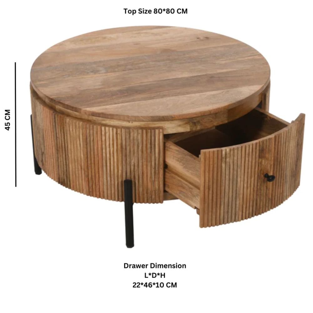 Home Collections Rajasthani York Natural Solid Wood Coffee Table With Metal Legs