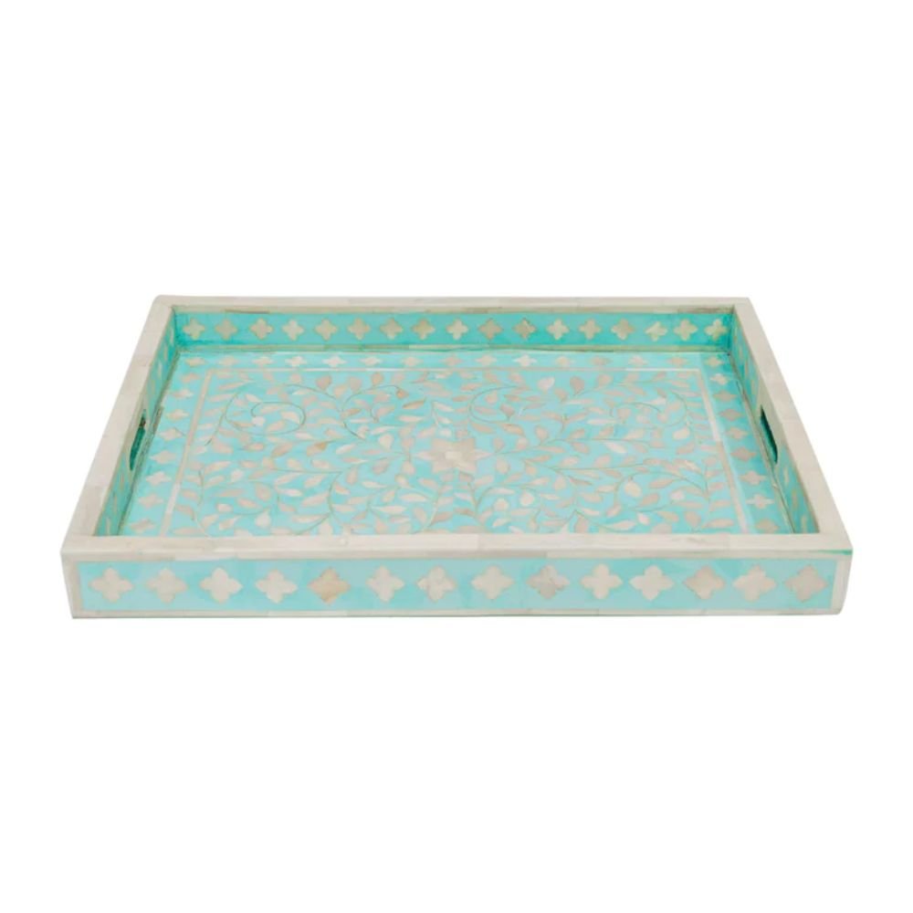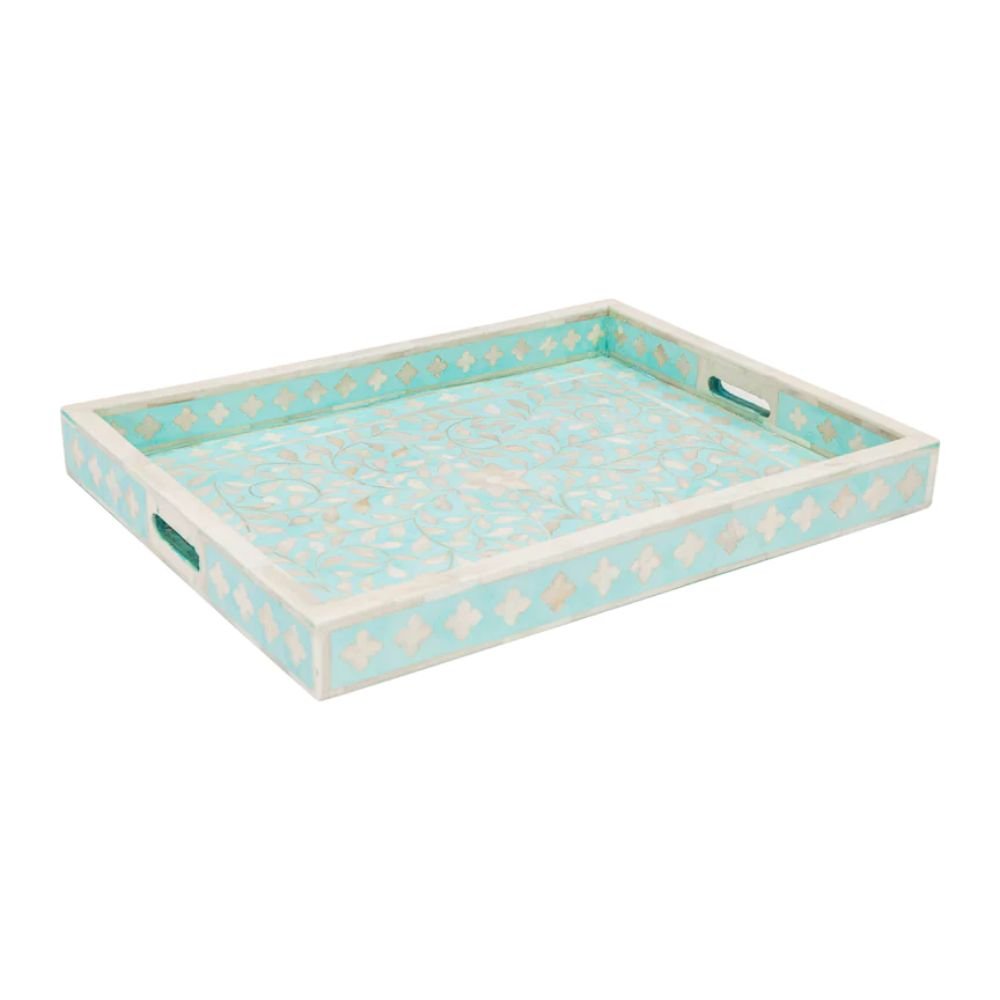 Equipped with sturdy handles, our bone inlay tray is as functional as it is beautiful, allowing for easy carrying and serving. The intricate detailing and attention to quality make it a unique addition to your home decor.