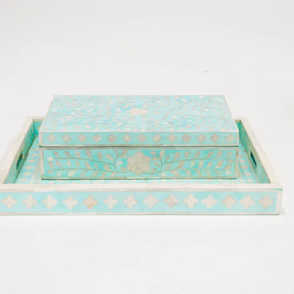 Introducing our exquisitely crafted Bone Inlay Tray – a work of art that seamlessly combines functionality with unparalleled beauty. Each tray is meticulously designed and handcrafted to bring a touch of elegance and sophistication to your home.