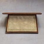 • Natural Rattan Inlays: Features hand-woven cane panels on the sides that provide a beautiful organic contrast against the walnut frame.