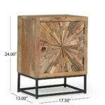 The chromatic depth of this accent cabinet is realized through a precision hand-piecing process that creates a multi-dimensional 3D sunburst pattern across the door façade. This evokes a tactile sensation where the material feels warm and authentic to the touch, despite its industrial-grade sturdiness. Light traverses the surface, illuminating subtle nuances in the weathered grain and the radial depth of the wood segments, ensuring each piece is an individual masterpiece. It is this devotion to naturalistic detail that elevates the piece from mere utility to a work of functional art. The signature industrial hardware and magnetic door closure underscore the quiet luxury of the design.