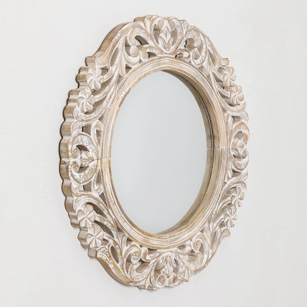 Home Collections Round Mango Wood Wall Mirror Zargor