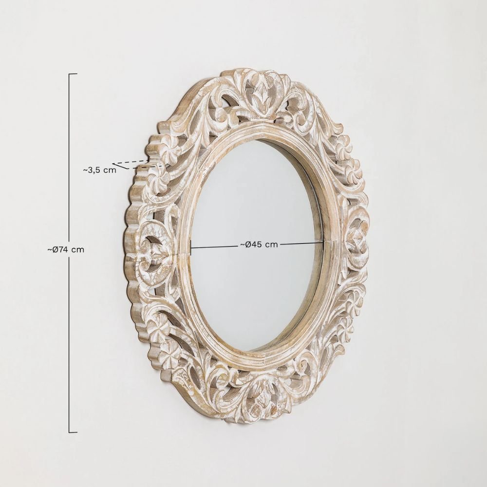Round Mango Wood Wall Mirror Zargor