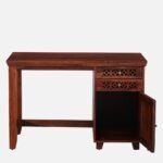 Every miter and radius of this study table is reinforced to yield a seamless exterior that celebrates the innate durability of the timber. The substantial ballast of the solid wood base ensures the unit remains immovable during rigorous creative pursuits. By prioritizing a “storage-centric” philosophy, the design emphasizes linear purity and a functional footprint, establishing this study table as a fundamental component of the sophisticated modern workspace. The internal armature is calibrated to support significant weight while maintaining its perfectly level and sleek architectural profile.
